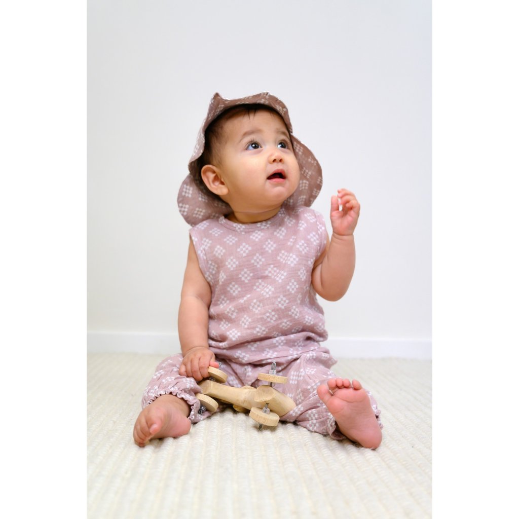 Prodyšný letní klobouček skvěle ochrání hlavičku, krk a ramena vašich nejmenších před sluncem. Poskytuje stín a zamezí případnému spálení. Díky bavlněnému mušelínu je klobouček dokonale prodyšný a absorbuje vlhkost. Klobouček můžete kombinovat s dalšími kousky značky Lodger ve stejném designu a vytvořit tak dokonalý outfit pro letní dny.