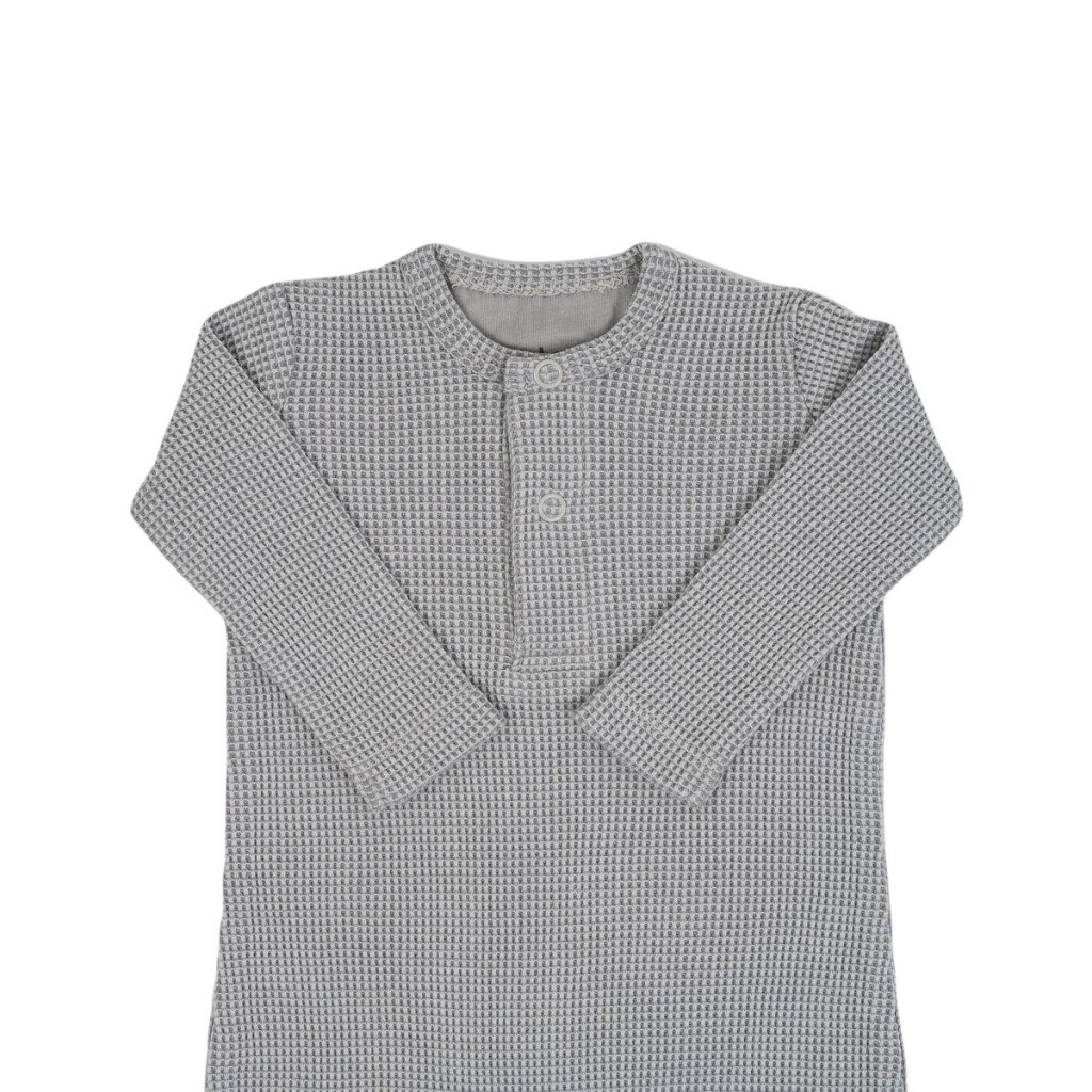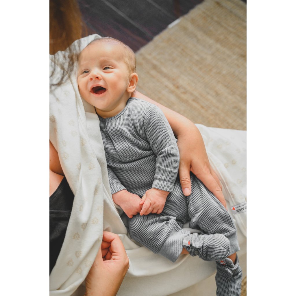 Dětský overal vyrobený z měkké a prodyšné bavlny s waflovou strukturou. Tento overal je tvořen jedním kusem, a tak udrží vaše děťátko v krásném teple. Patentky v oblasti mezi nožičkama vám usnadní přebalování. Overal Jumper má certifikát Öko-Tex, který dokládá nulový obsah škodlivin.