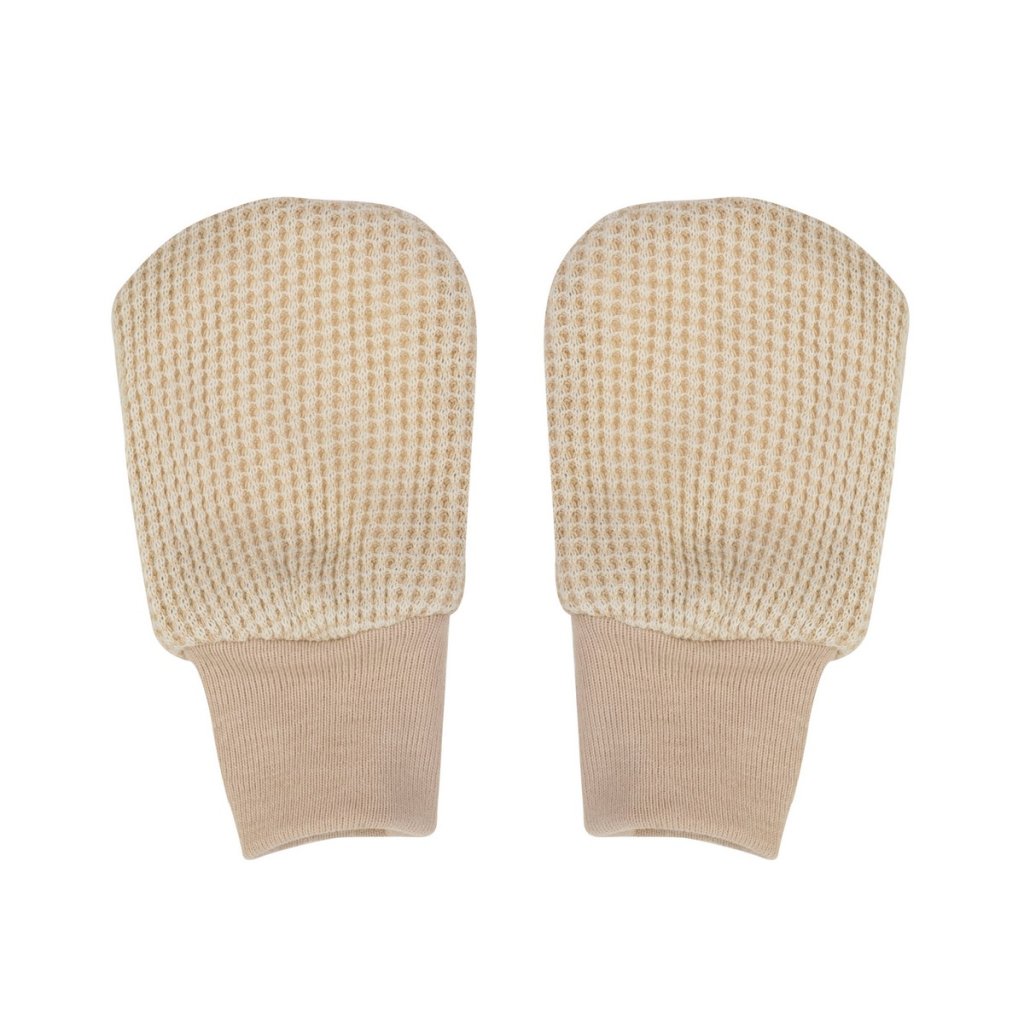 Rukavičky proti poškrábání jsou vyrobené z bavlny s waflovou strukturou. Tyto dětské rukavičky jsou speciálně navržené tak, aby zabránily miminkům v poškrábání sebe sama. Rukavičky jsou podšité. Snadné navlékání a svlékání díky pružnému žebrovanému materiálu na lemu. Barva je krémová.