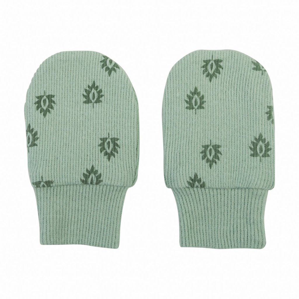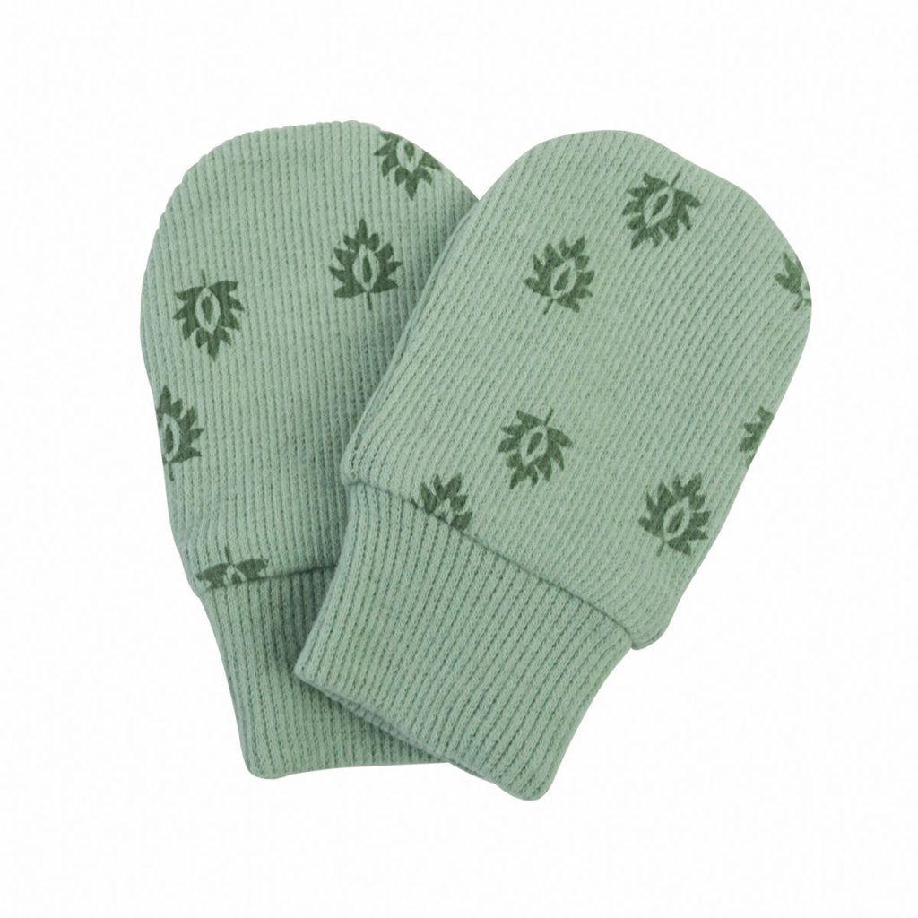 Rukavičky proti poškrábání jsou vyrobené ze 100% bavlny s žebrovanou strukturou. Tyto dětské rukavičky jsou speciálně navržené tak, aby zabránily miminkům v poškrábání sebe sama. Rukavičky jsou podšité. Snadné navlékání a svlékání díky pružnému žebrovanému materiálu na lemu. Barva je zelenkavá s potiskem.