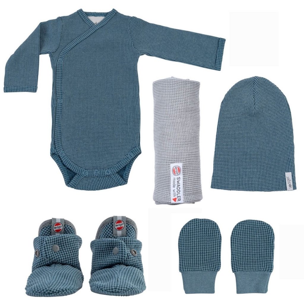 Krásný novorezenecký set. Set se skládá z Beanie Ciumbelle 0-6 měsíců, Romper LS Ciumbelle 56, Slipper Ciumbelle 0-3 měsíce, Swaddler Ciumbelle a Mittens. Ideální jako dárek k narození miminka!