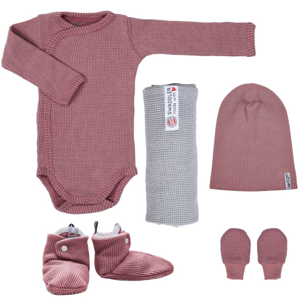 Krásný novorezenecký set. Set se skládá z Beanie Ciumbelle 0-6 měsíců, Romper LS Ciumbelle 56, Slipper Ciumbelle 0-3 měsíce, Swaddler Ciumbelle a Mittens. Ideální jako dárek k narození miminka! Set má vínovou barvu + swaddler v barvě Donkey.