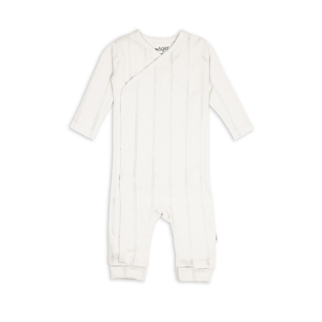 Dopřejte svému miminku maximální komfort s hedvábně jemným overalem Lodger. Díky praktickému zavinovacímu střihu není nutné overal přetahovat přes hlavičku – jednoduše jej zavinete a zapnete na patentky. Oblékání je tak rychlé a bez stresu pro vás i pro vaše dítě. Overal je vyroben ze 100% organické bavlny, která je mimořádně měkká, pružná a prodyšná. Skvěle sedí na těle a poskytuje pohodlí po celý den. Pointelle úplet dodává overalu jemný, moderní a nadčasový vzhled.