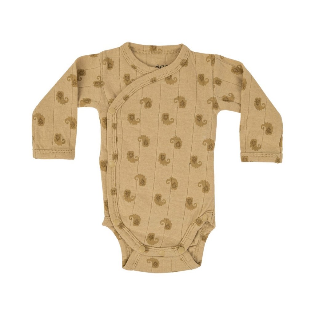 Body Romper je vyrobeno z hydrofilní bavlněné pleteniny, díky které je krásně savé, prodyšné a opravdu jemné. Má skvělý střih, který dítě neškrtí kolem krku, hrudníku ani ručiček. Kolem nožiček má dodatečné záhyby, a tak nabízí více prostoru pro plenku. Díky zavinovacímu střihu a zapínání na druky se snadno obléká a svléká. Díky dlouhým rukávům je ideálním kouskem na podzim a zimu!