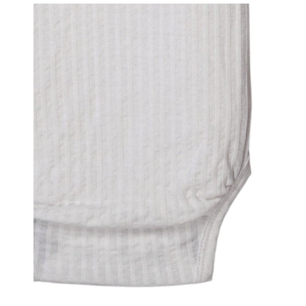 Body Romper je vyrobeno ze 100% bavlny se strukturou Seersucker, díky které je krásně prodyšné a vzdušné. Má skvělý střih, který dítě neškrtí kolem krku, hrudníku ani ručiček. Kolem nožiček má dodatečné záhyby, a tak nabízí více prostoru pro plenku. Díky zavinovacímu střihu a zapínání na druky se snadno obléká a svléká. Díky zvrásněným pruhům má body mačkaný vzhled.