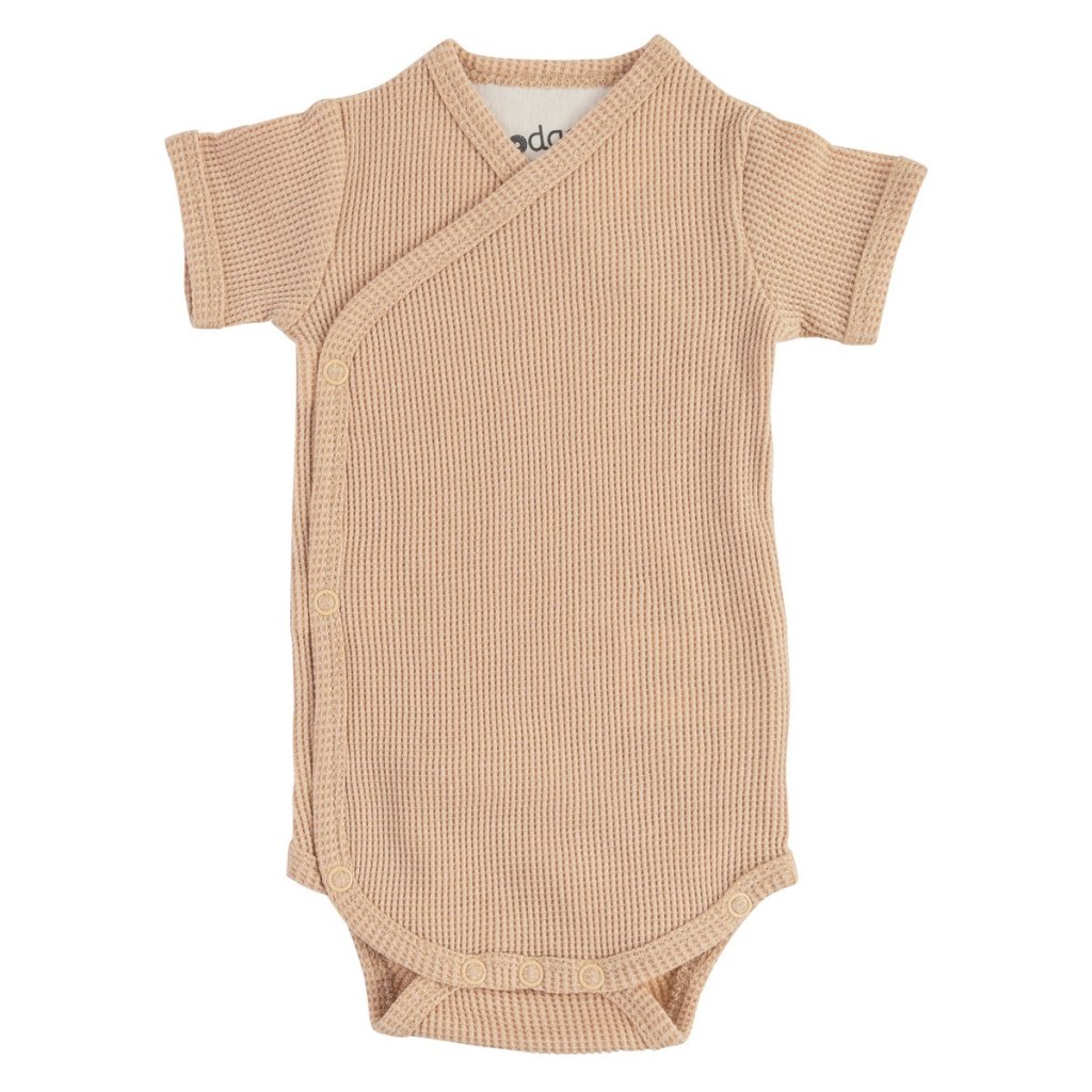 Body Romper je vyrobeno z waflové bavlny, díky které je krásně savé, prodyšné a opravdu jemné. Má skvělý střih, který dítě neškrtí kolem krku, hrudníku ani ručiček. Kolem nožiček má dodatečné záhyby, a tak nabízí více prostoru pro plenku. Díky zavinovacímu střihu a zapínání na druky se snadno obléká a svléká. Ideální kousek na jaro a léto!