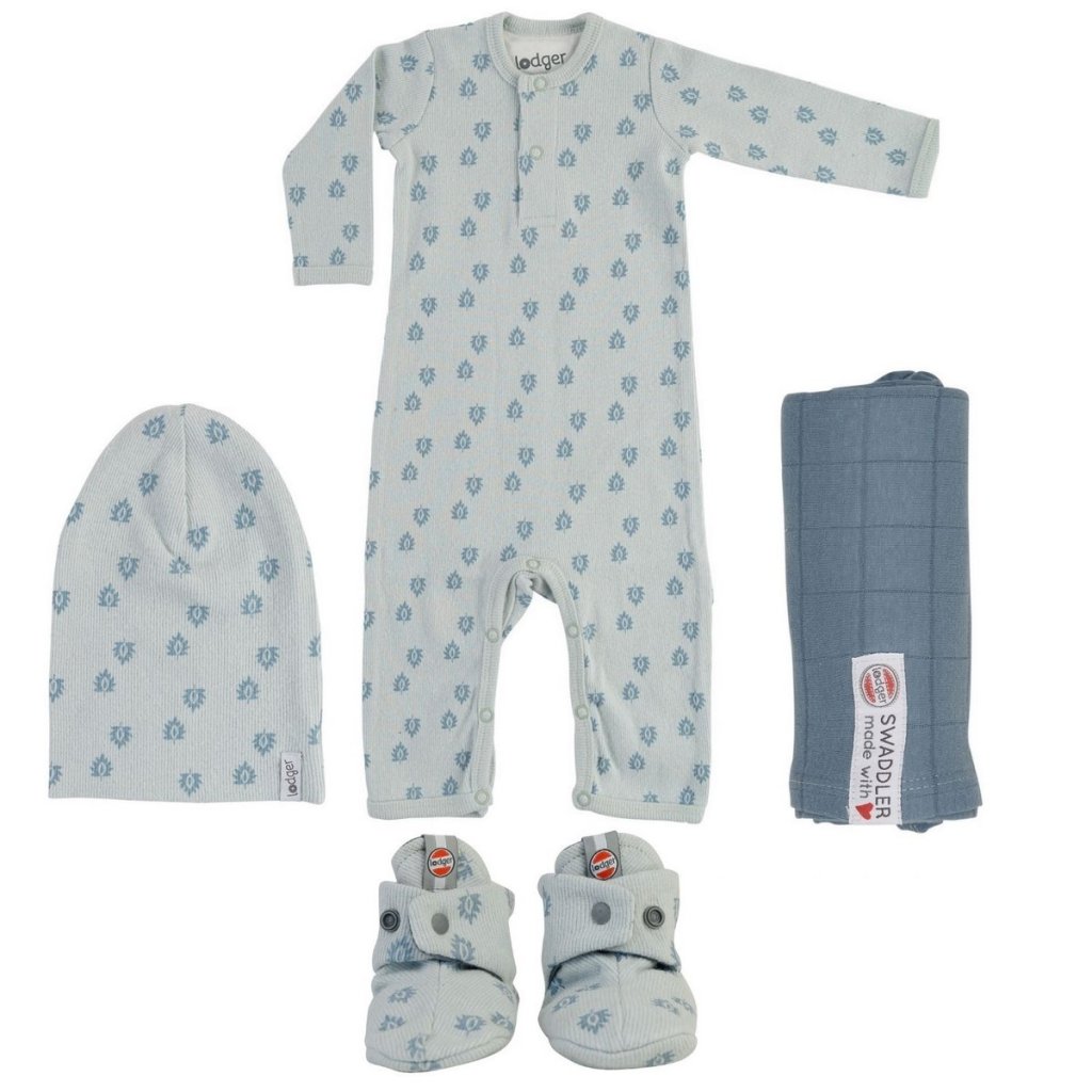 Krásný set. Set se skládá z Beanie Rib 0-6 měsíců, Jumper Print Rib vel. 56, Slipper Print Rib 0-3 měsíců, Swaddler Tribe. Ideální jako dárek!