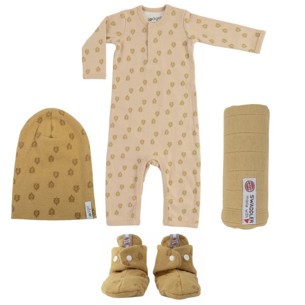 Krásný set. Set se skládá z Beanie Rib 0-6 měsíců, Jumper Print Rib vel. 56, Slipper Print Rib 0-3 měsíců, Swaddler Tribe. Ideální jako dárek!