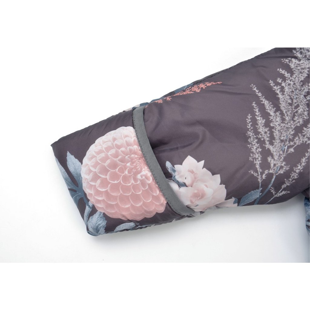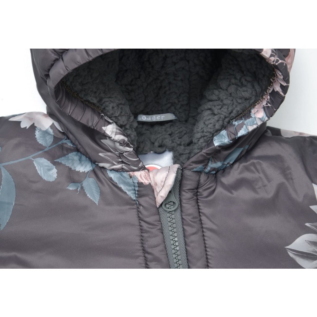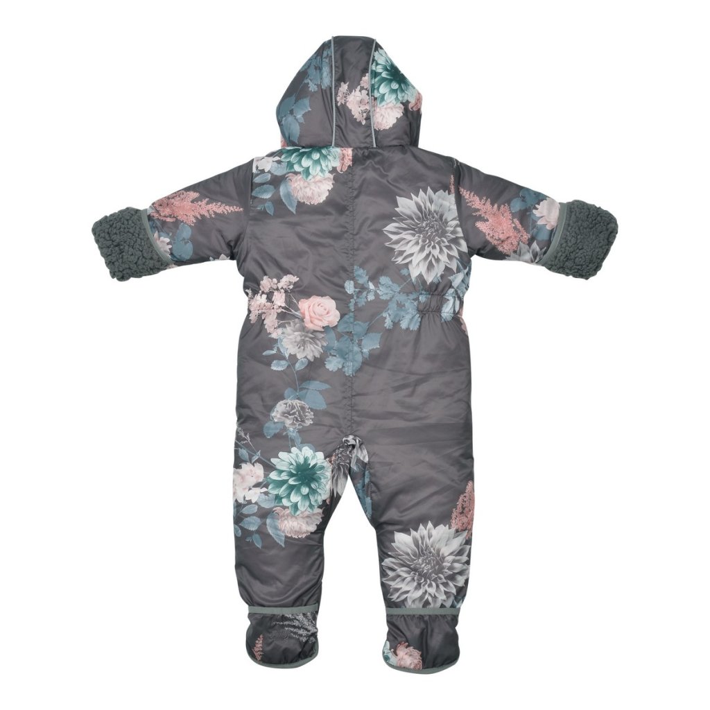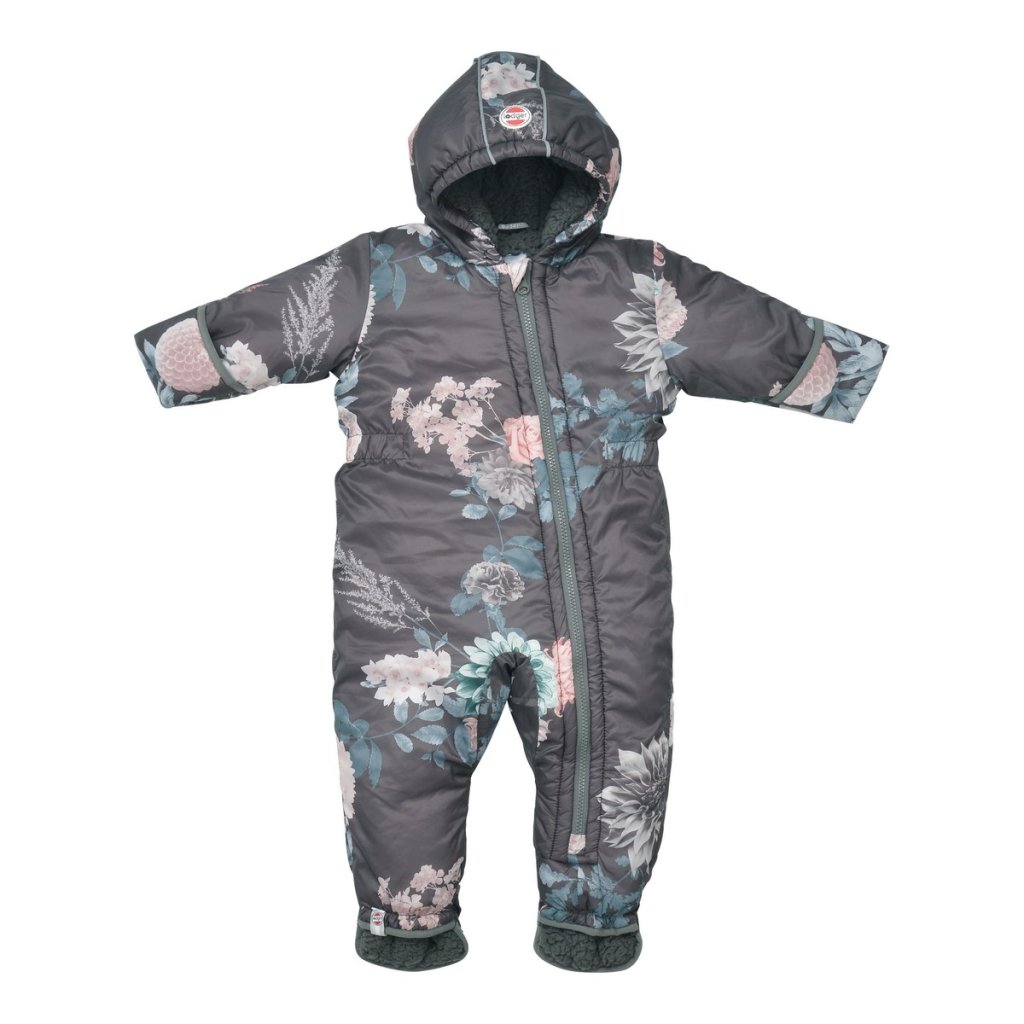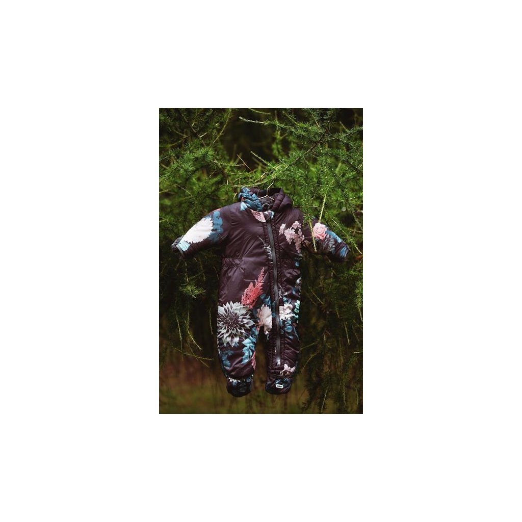 Zimní kombinéza Skier nizozemské značky Lodger je vyrobena z pevného, vodě i větru odolného polyesteru tak, aby miminko ochránila i za opravdu nepříznivého počasí. Podšívka je ušita z měkkého fleecu, který je příjemný na dotek a nedráždí dětskou pokožku. Kombinéza má tmavě hnědou barvu s motivem květin typickým pro kolekci Botanimal.