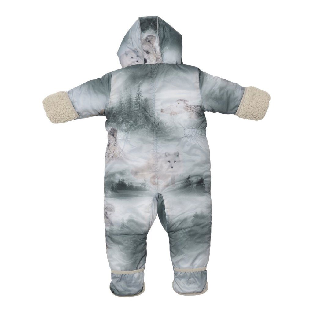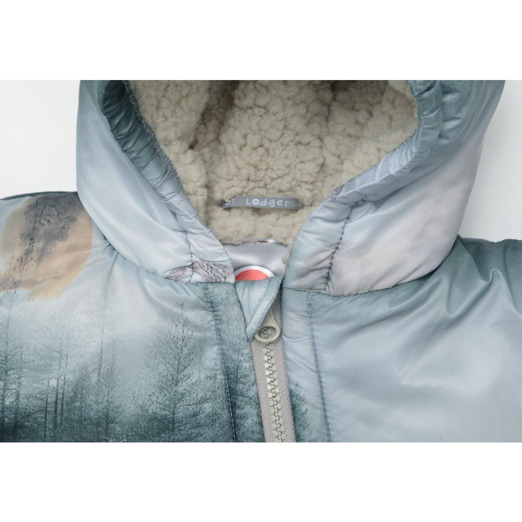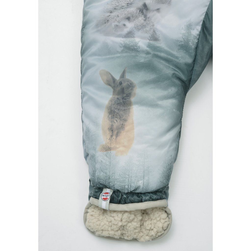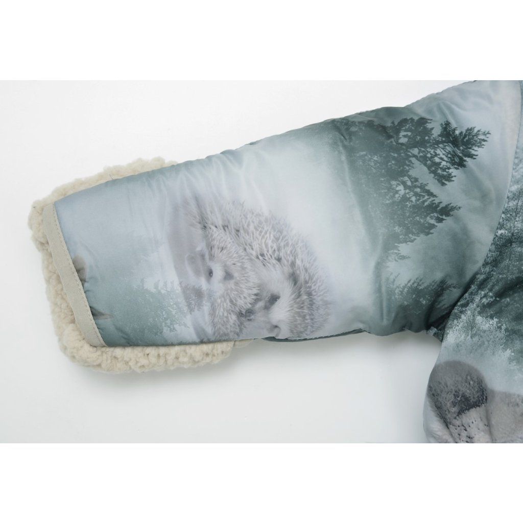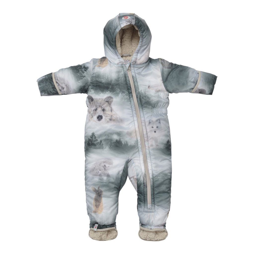 Zimní kombinéza Skier nizozemské značky Lodger je vyrobena z pevného, vodě i větru odolného polyesteru tak, aby miminko ochránila i za opravdu nepříznivého počasí. Podšívka je ušita z měkkého fleecu, který je příjemný na dotek a nedráždí dětskou pokožku. Kombinéza má šedozelenou barvu s motivem lesních zvířat typickým pro kolekci Botanimal.