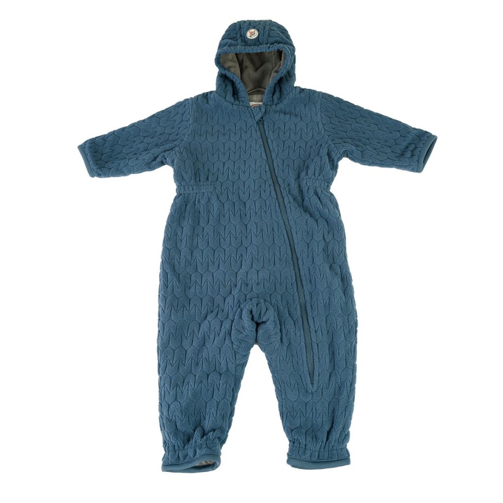 Zimní kombinéza Skier nizozemské značky Lodger je vyrobena z fleecu ze 100% polyesteru, který je příjemný na dotek a nedráždí dětskou pokožku. Kombinéza má modrou barvu s vytlačeným vzorem.