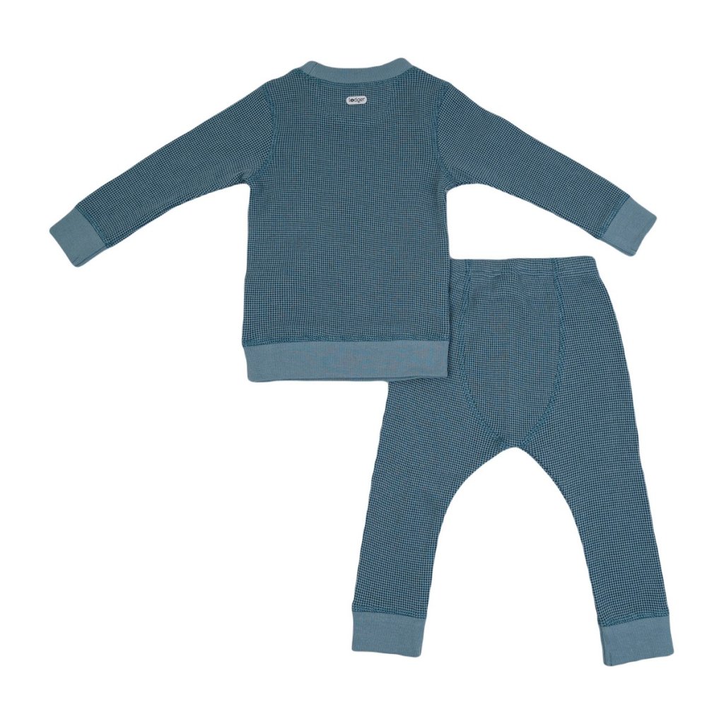 Dvoudílné dětské pyžámko vyrobené ze 100% bavlny. Rukávy a nohavice jsou zakončeny měkkým bavlněným úpletem. Spodní díl má dodatečné záhyby pro plenku, díky čemuž skvěle sedne. Pyžámko má certifikát Oeko-Tex, a proto neobsahuje žádné škodlivé látky.