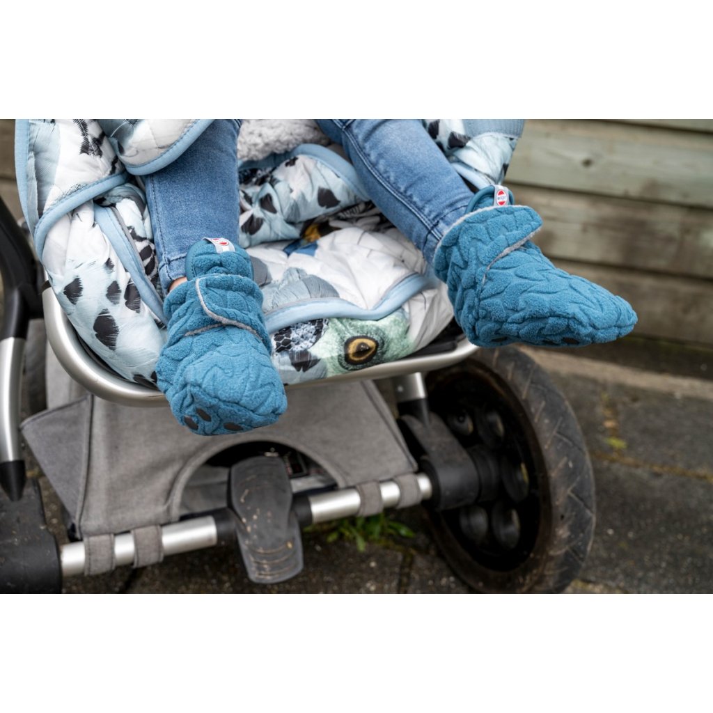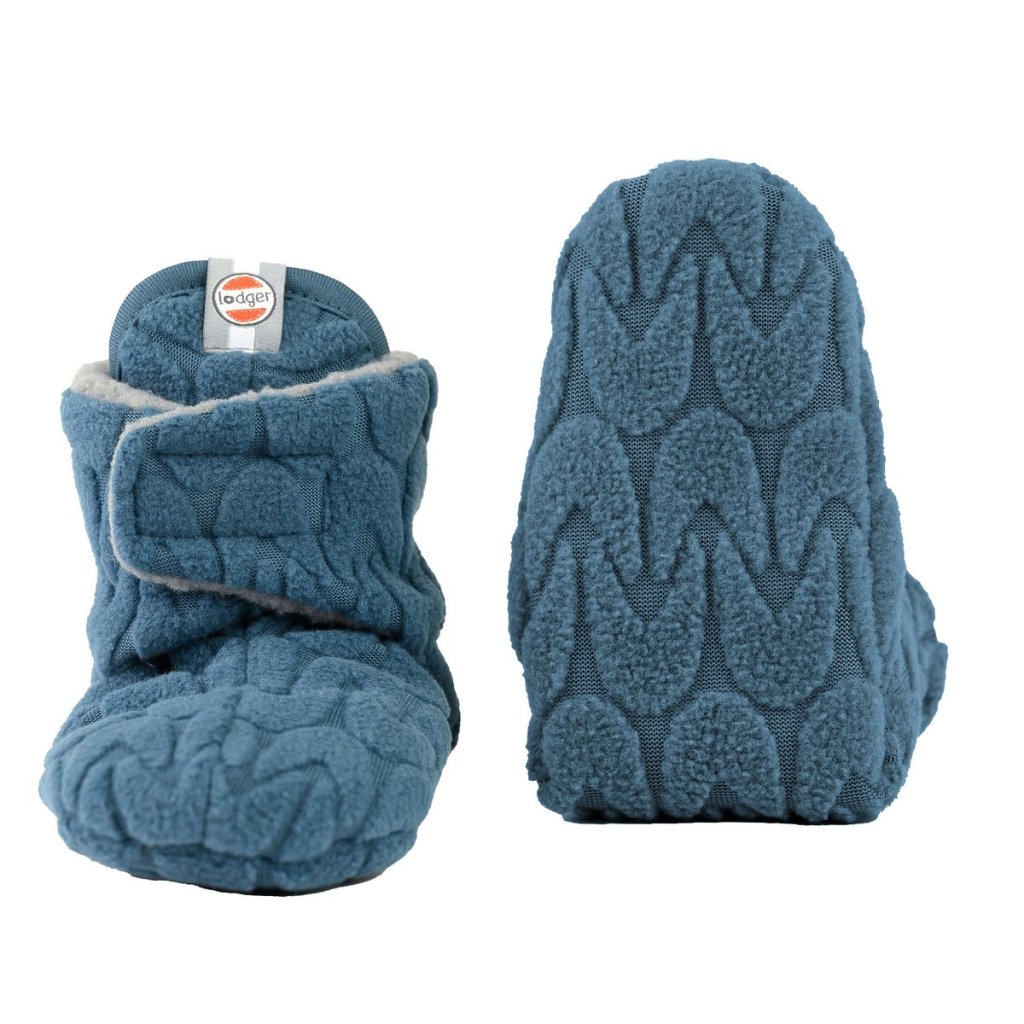 Tyto capáčky značky Lodger spolehlivě udrží nožky Vašeho dítěte v teple a pohodlí. Jsou vyrobeny z měkkého, hřejivého fleecu, který je speciálně upraven proti žmolkování. Capáčky mají nastavitelný suchý zip, díky kterému se optimálně přizpůsobí dětské nožičce. Od velikosti 6 - 12 měsíců je jejich podrážka opatřena speciální protiskluzovou úpravou. Barva capáčků je modrá s vytlačeným vzorem.