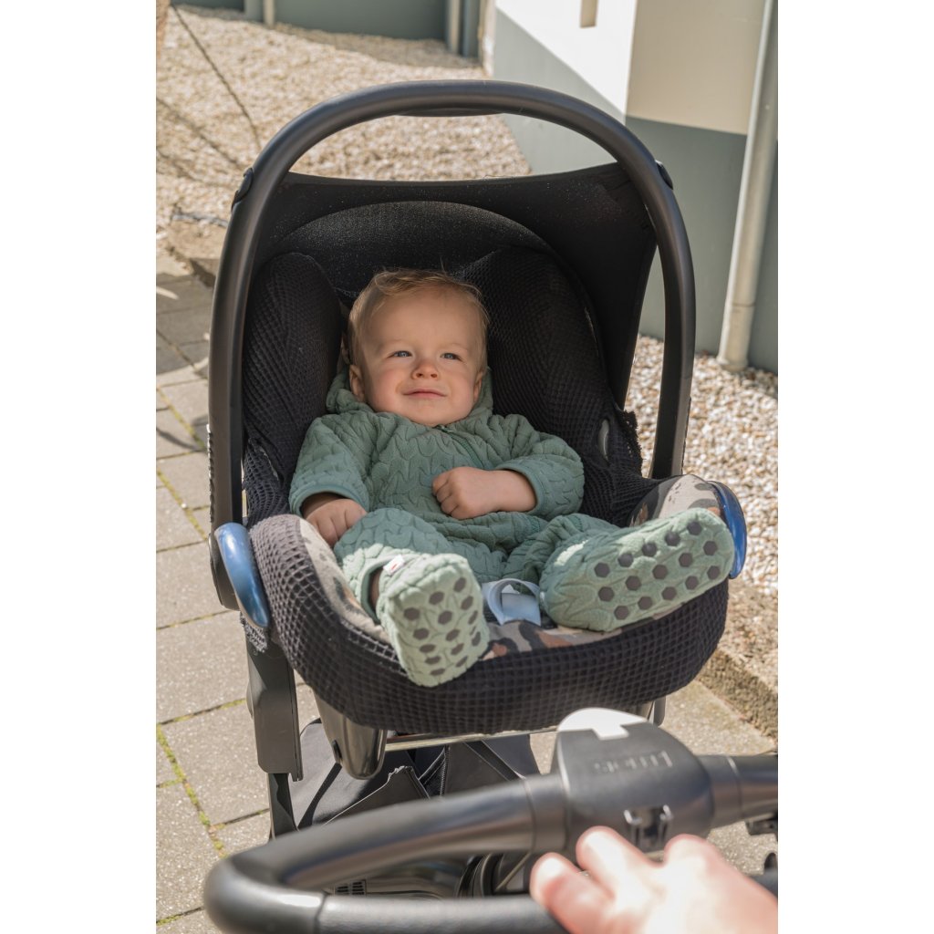 Tyto capáčky značky Lodger spolehlivě udrží nožky Vašeho dítěte v teple a pohodlí. Jsou vyrobeny z měkkého, hřejivého fleecu, který je speciálně upraven proti žmolkování. Capáčky mají nastavitelný suchý zip, díky kterému se optimálně přizpůsobí dětské nožičce. Od velikosti 6 - 12 měsíců je jejich podrážka opatřena speciální protiskluzovou úpravou. Barva capáčků je zelená s vytlačeným vzorem.