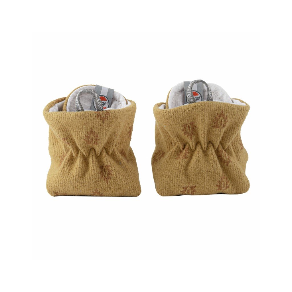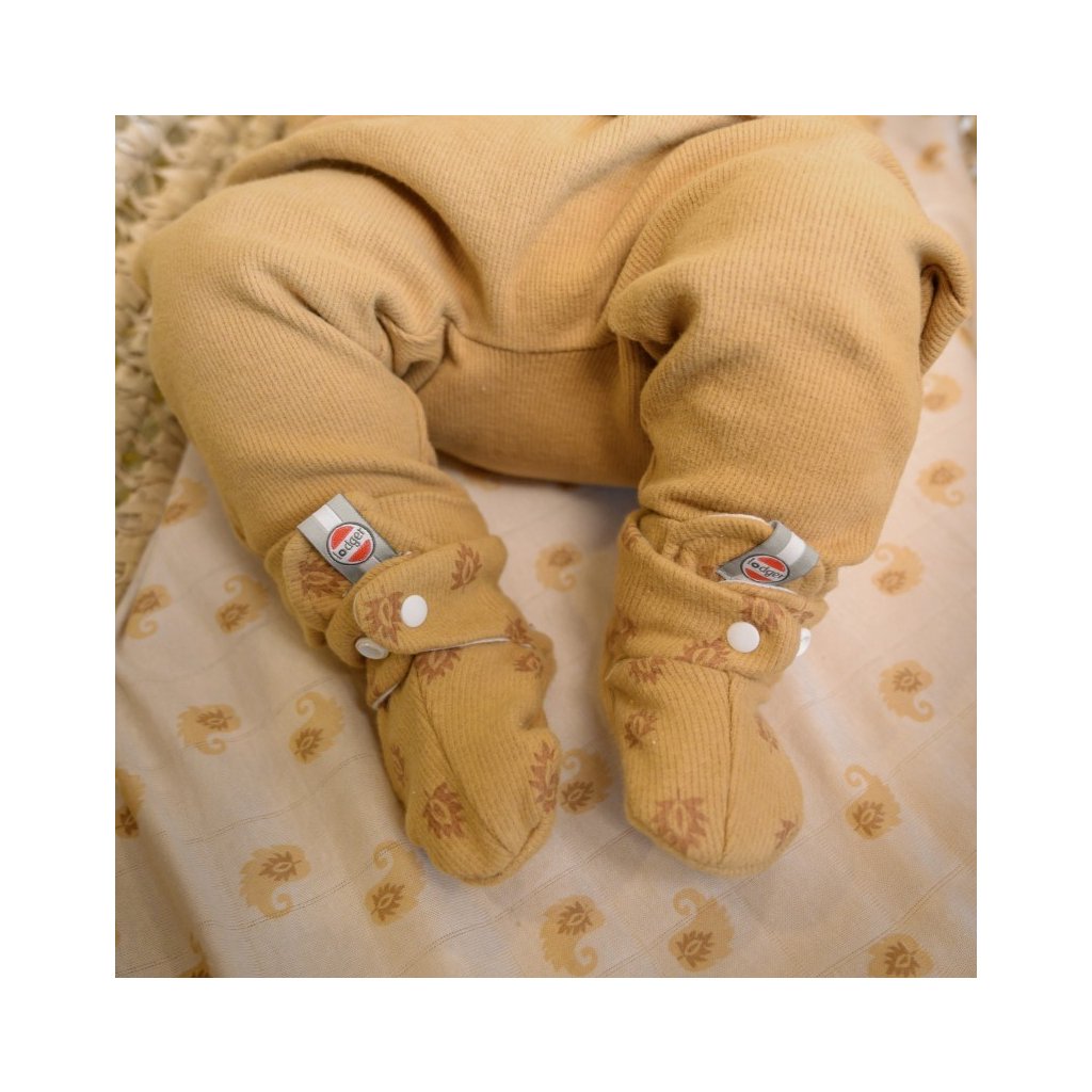 Tyto capáčky jsou ideální obuví pro miminka do pozimních a jarních měsíců. Jsou totiž vyrobeny ze 100% bavlny, která má certifikát Oeko-Tex, a proto neobsahuje žádné škodlivé látky. Capáčky mají dvojité zapínání na patentky kolem kotníku, díky čemuž se snadno nazouvají a perfektně drží na svém místě. Ve velikosti 6 - 12 měsíců je jejich spodní strana opatřena speciální protiskluzovou úpravou.