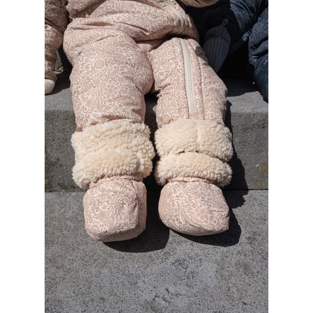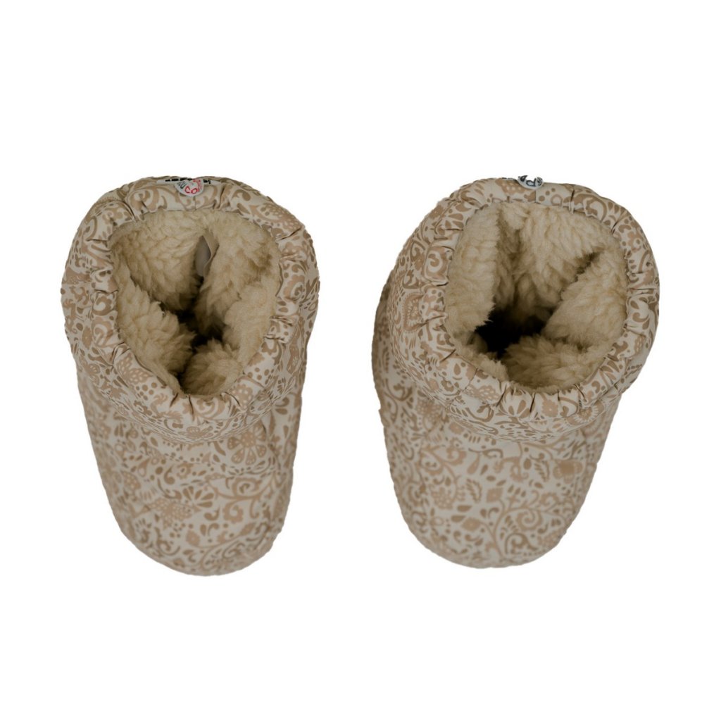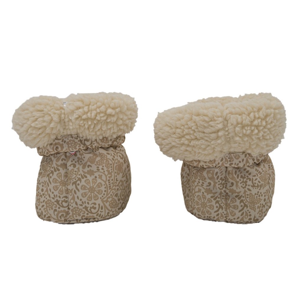 Procházka s kočárkem, v nosítku nebo vyjížďka na sáních v chladných zimních dnech? Dopřejte nožičkám svého dítěte pohodlí a dokonalé teplo s hřejivými zimními capáčky. Vnější vrstva je ušita z vodě i větru odolného materiálu, vnitřní pak z krásně měkkého fleecu. Capáčky se snadno nazouvají a zouvají. Jsou vhodné pro děti od 6 měsíců. Tyto botičky nejsou určeny k chození venku.