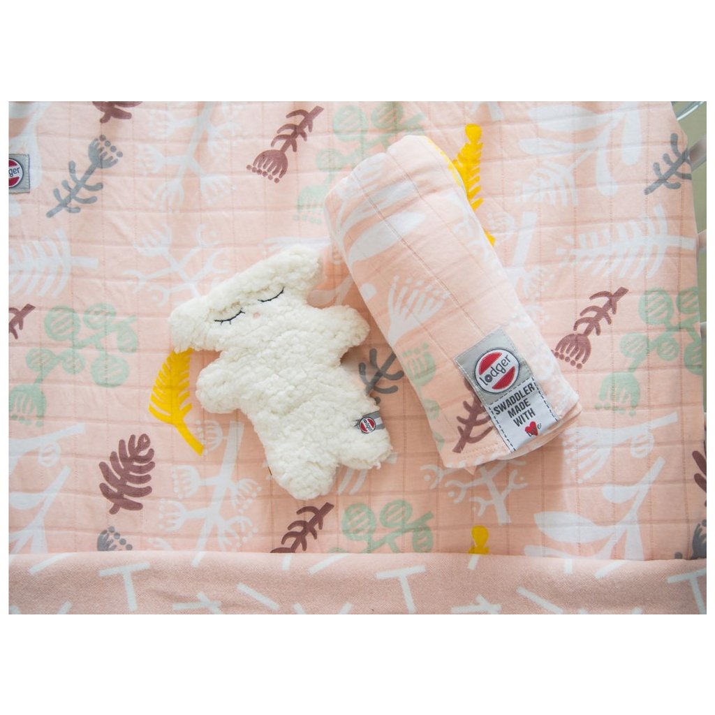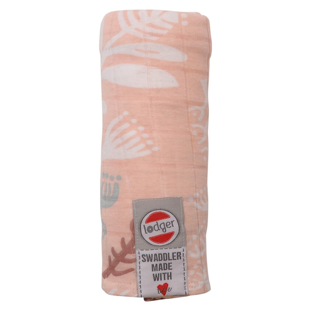 Swaddler od firmy Lodger je základním produktem každé novorozenecké výbavičky. Má totiž velmi širokou škálu použití, která jsou uvedena níže. Swaddler je vyroben z hydrofilní bavlněné látky, která je na rozdíl od ostatních na trhu pletená, nikoli tkaná. Díky tomu je schopna absorbovat více vlhkosti a navíc je silnější a odolnější. Kromě toho je pletená hydrofilní látka velice měkká, pružná, prodyšná a příjemná na dotek. Tento Swaddler má růžovou barvu s motivem rostlin.