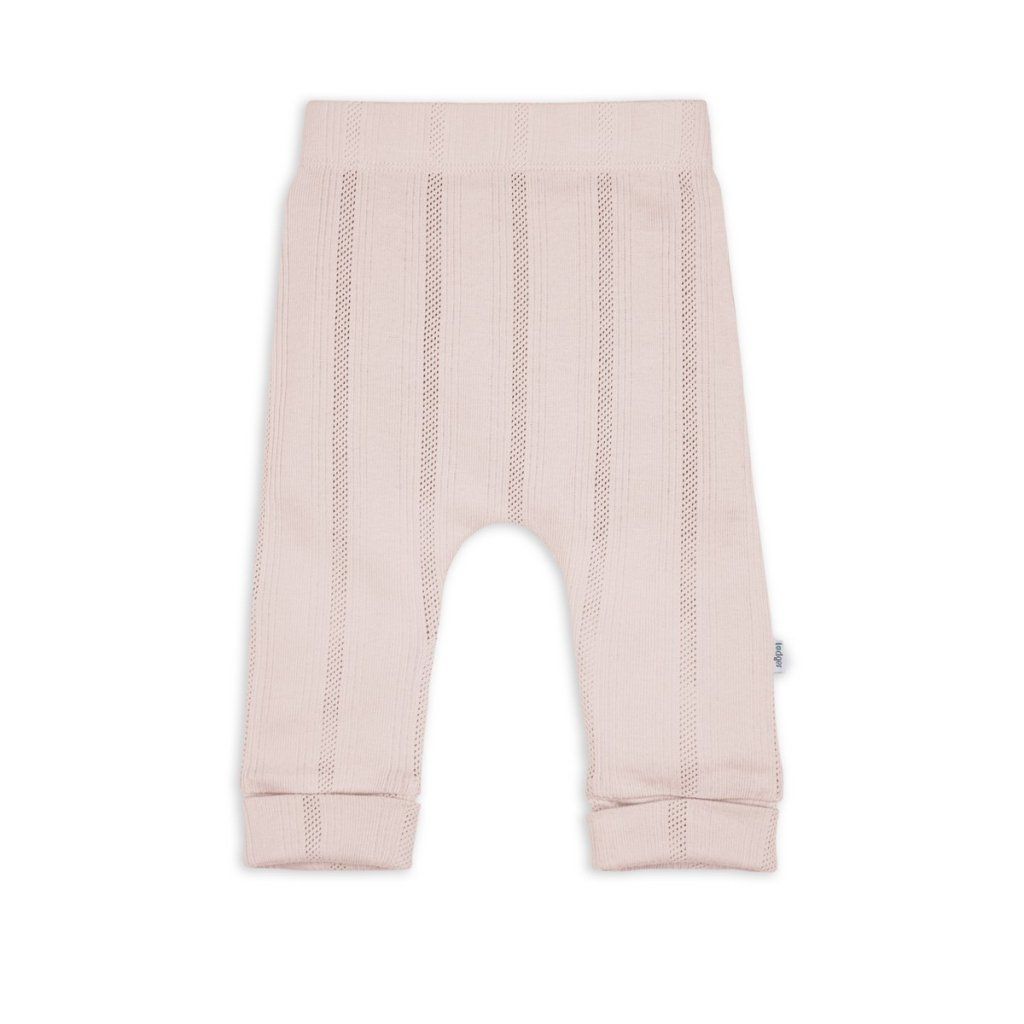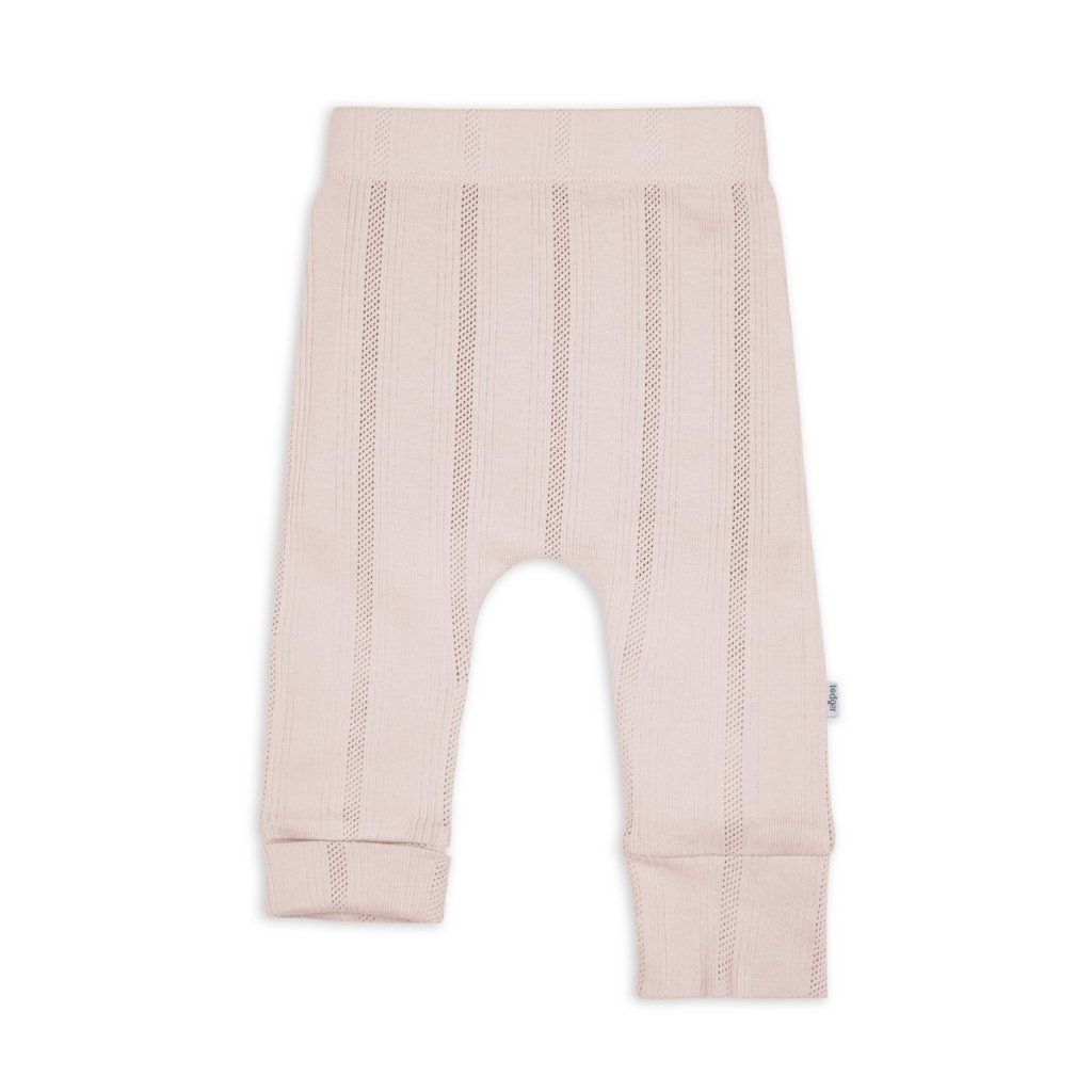 Tepláčky s elastickým pasem. Příjemný, prodyšný materiál je šetrný k citlivé dětské pokožce. Tepláčky mají nízký sed, takže nebudou vaše miminko nikde tlačit nebo škrtit a nabízejí tak více prostoru pro plenku. Můžete je zkombinovat se zavinovacími kabátky a vytvořit tak stylový outfit na podzim a jaro. Pointelle úplet dodává tepláčkům jemný, moderní a nadčasový vzhled.
