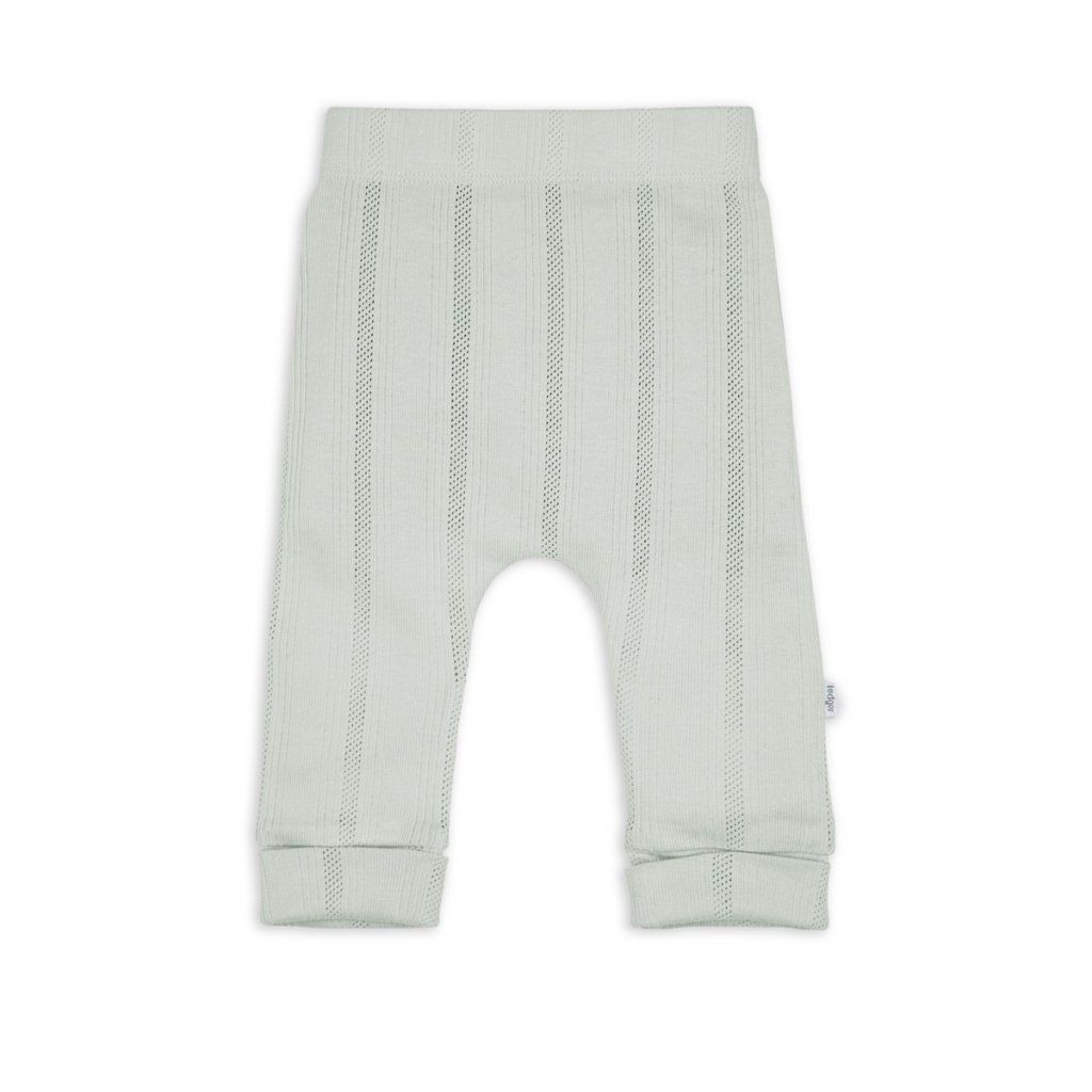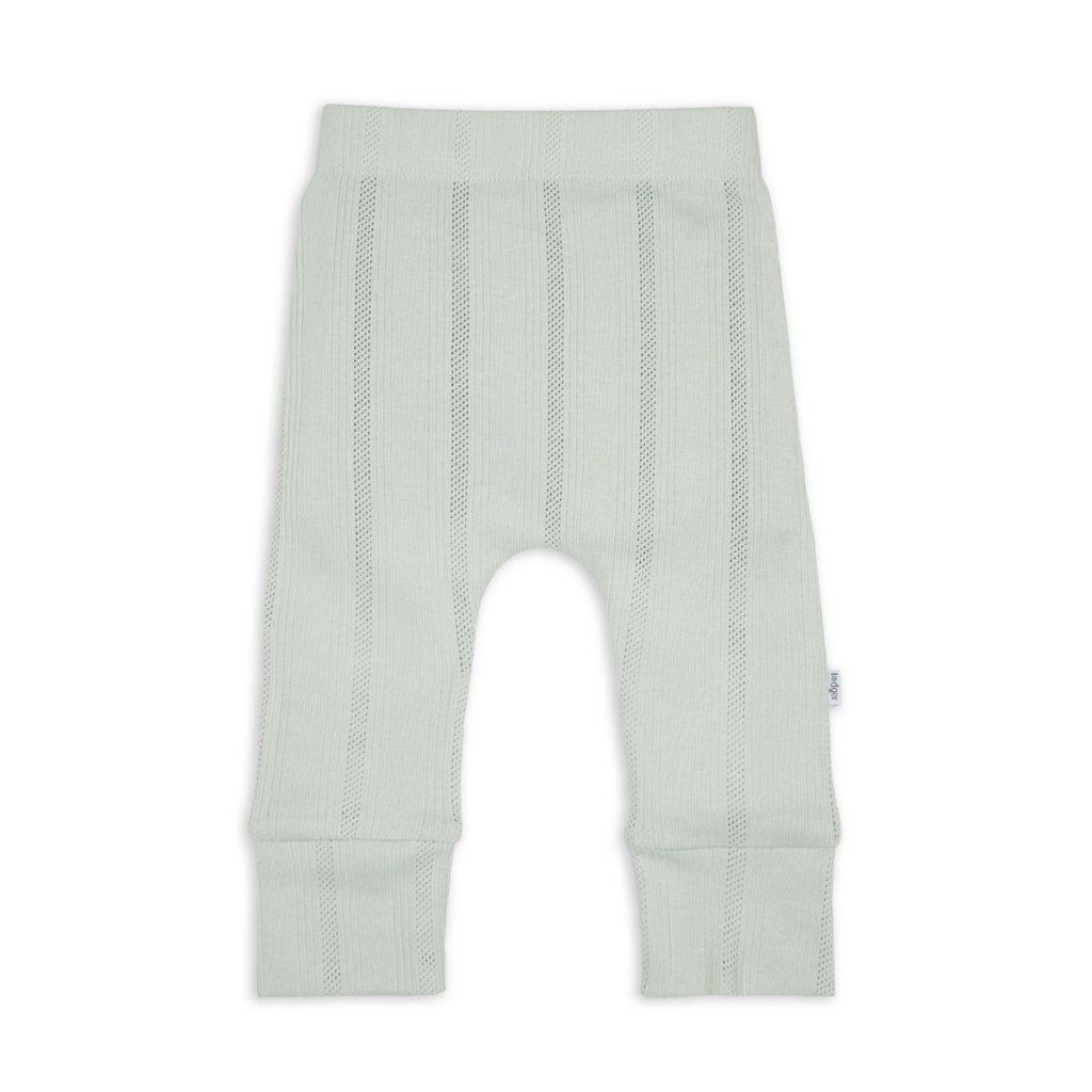 Tepláčky s elastickým pasem. Příjemný, prodyšný materiál je šetrný k citlivé dětské pokožce. Tepláčky mají nízký sed, takže nebudou vaše miminko nikde tlačit nebo škrtit a nabízejí tak více prostoru pro plenku. Můžete je zkombinovat se zavinovacími kabátky a vytvořit tak stylový outfit na podzim a jaro. Pointelle úplet dodává tepláčkům jemný, moderní a nadčasový vzhled.