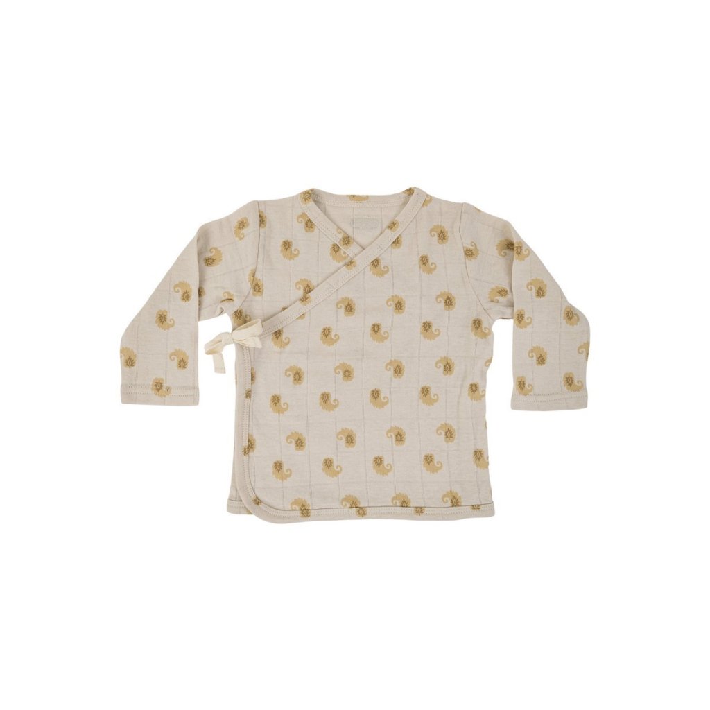 Kabátek je vyroben ze 100% bavlny, díky které je krásně savý, prodyšný a opravdu jemný. Má skvělý střih, který dítě neškrtí kolem krku, hrudníku ani ručiček. Díky praktickému zavinovacímu designu se snadno obléká a svléká. Kabátek má uvnitř druk a zvenku má zavazování na tkaničku.