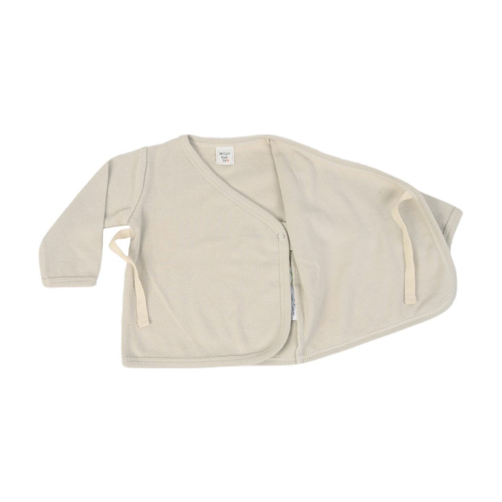 Kabátek je vyroben ze 100% bavlny s žebrovanou strukturou, díky které je krásně savý, prodyšný a opravdu jemný. Má skvělý střih, který dítě neškrtí kolem krku, hrudníku ani ručiček. Díky praktickému zavinovacímu designu se snadno obléká a svléká. Kabátek má uvnitř druk a zvenku má zavazování na tkaničku.