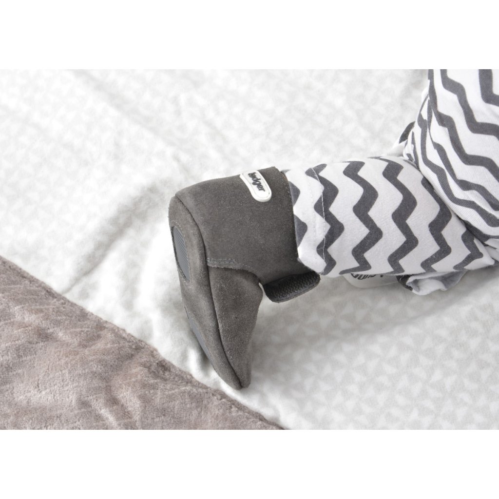 Capáčky Walker jsou nastavitelné a skvěle sedí. Gumové protiskluzové podrážky poskytují bezpečí při prvních pokusech o stání a chození. Botičky lze velmi snadno nasadit a díky suchým zipům kolem kotníku vždy zůstanou na svém místě. Tyto capáčky mají univerzální tmavě šedou barvu.