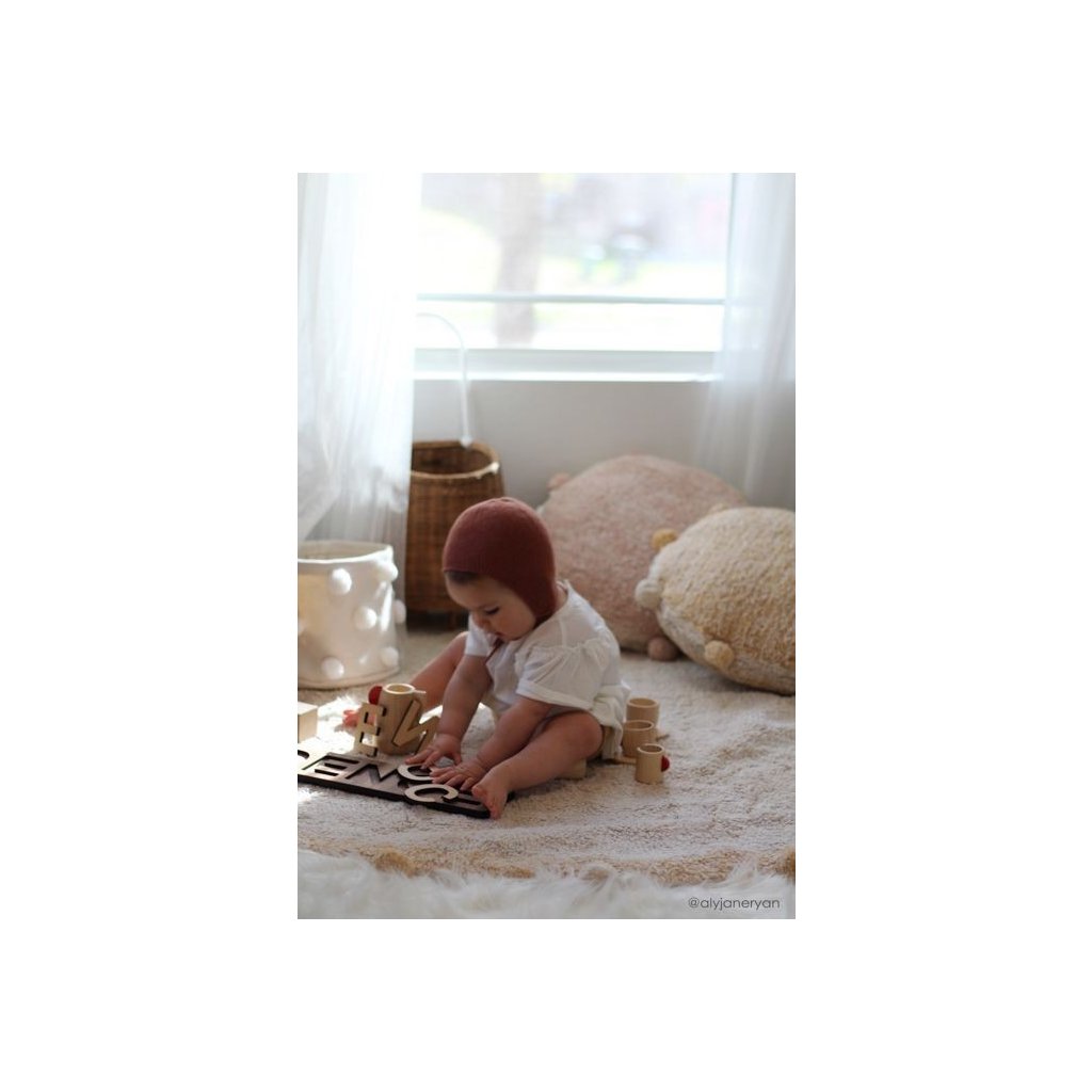 Kulatý měkký bavlněný koberec zakončený bavlněnými bambulkami. Vyrobeno ze 100% přírodní bavlny, lze prát v pračce (běžná pračka s kapacitou 5 kg). Díky své praktické velikosti a měkké nadýchané kvalitě je skvělou volbou pro ty nejmenší. Ručně vyrobený řemeslníky, tento koberec je jedinečný.
