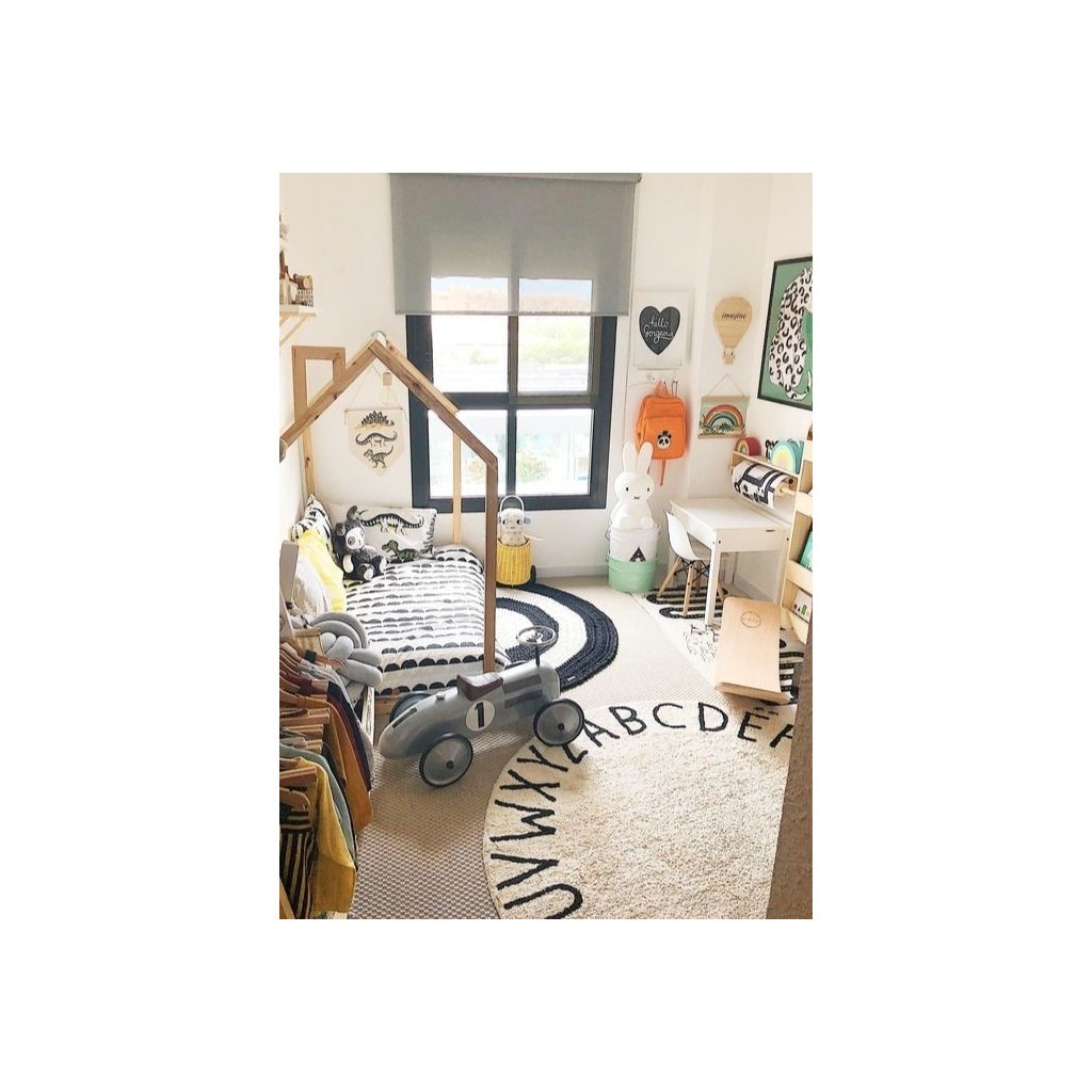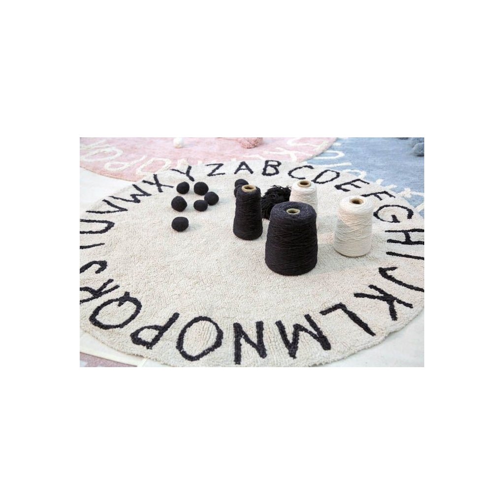 Od A do Z… S kolekcí Round ABC budete mít tolik způsobů, jak vyzdobit každý dětský pokoj moderním a elegantním stylem! Kulatý, pratelný v pračce (konvenční pračka s kapacitou 6 kg), jeho design a barva jsou hitem mezi chlapci a děvčaty a díky abecedě kolem okraje je tento koberec tak zábavný. Navíc se snadno hodí k jakémukoli typu dekoru. Aby byla zcela bezpečný, používají se pouze přírodní barviva, a protože je vyroben z bavlny, je lehký, pružný a velmi měkký.
