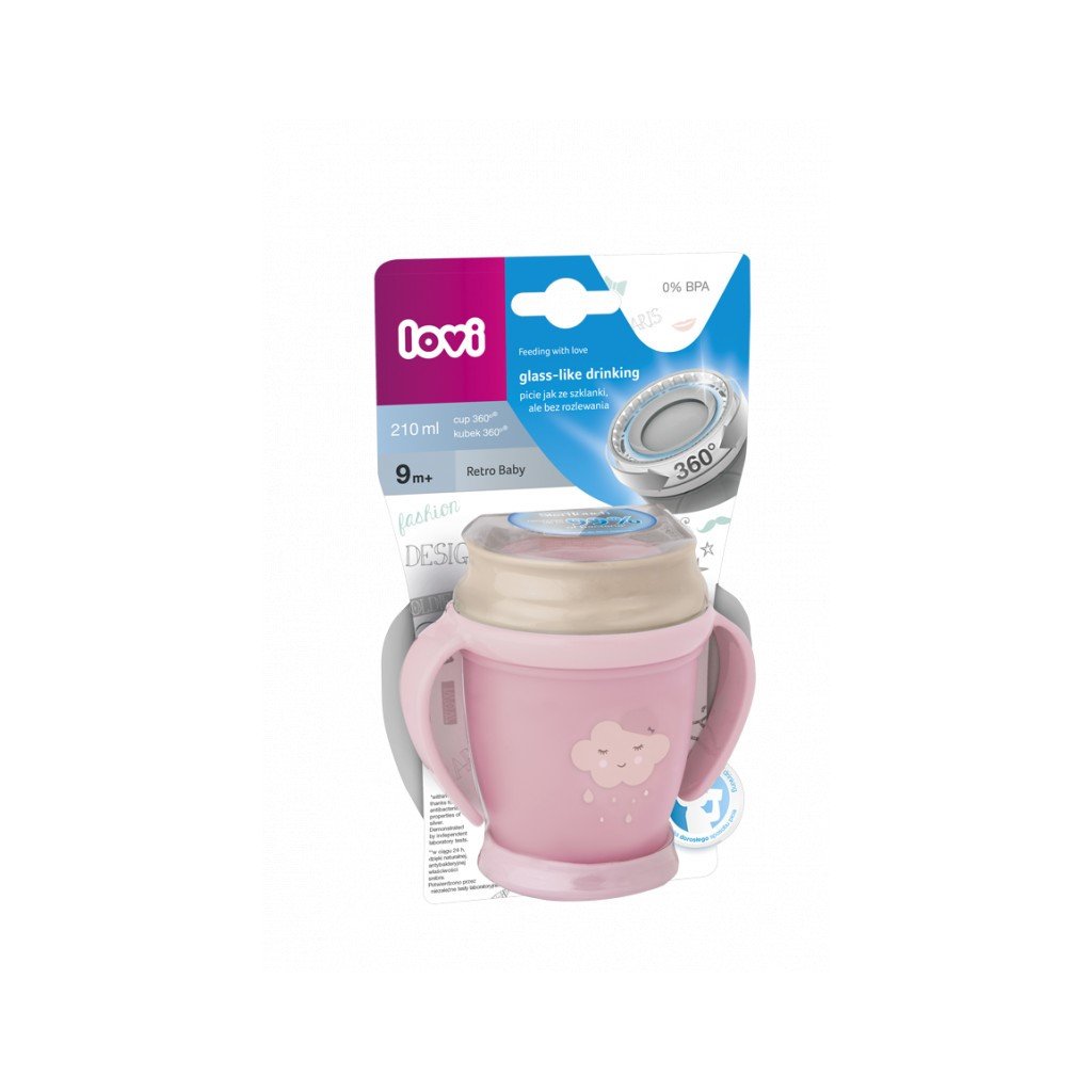 LOVI Hrníček mini 360 Retro Baby new s úchyty růžový 210 ml