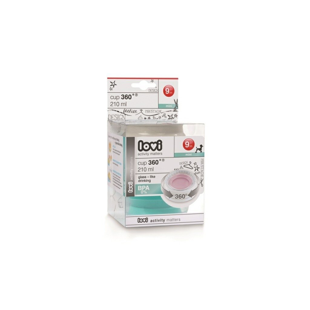 První hrníček, ze kterého pijete stejně jako ze sklenice… ale bez rozlití! Hrníček LOVI 360° byl speciálně vytvořen tak, aby byl co nejlepším pomocníkem Vašeho dítěte, které se učí samostatně pít ze sklenice a chránil obsah hrníčku před rozlitím. Silikonová membrána umožňuje pití z každého místa po obvodu hrníčku, učí dítě pít přirozeným způsobem a podporuje jeho rychlejší rozvoj. Neobsahuje pítko – dítě pije stejně jako ze sklenice. Chrání obsah hrníčku před rozlitím. Víčko obsahuje antibakteriální ochranu SteriTouch®. SteriTouch® využívá přírozené antibakteriální vlastnosti stříbra a umožňuje tak minimalizovat množství onemocnění, které způsobují mikroorganismy. Nezávislé laboratorní testy dokázaly, že SteriTouch® může redukovat až v 99,99% populací bakterií jako jsou E.coli a stafylokok zlatý v průběhu 24 hodin. SteriTouch® nenahrazuje standardní čistící procesy, ale zajišťuje zvýšenou ochranu mezi jednotlivým umýváním. Antibakteriální ochrana SteriTouch® se nachází výhradně ve šroubovacím víčku s ventilem. Víčko 360° umožňuje pití z jakéhokoliv místa po obvodu hrníčku. Inovovaný těsnící systém se snadno udržuje v čistotě, umožňuje pití bez rozlévání, ale není primárně konstruován jako nekapající hrníček (při silném zatlačení na membránu tekutina vykapává) - učí dítě kontrolovat pohyby při pití a připravuje ho na pití z otevřeného hrníčku. Krycí víčko chrání víčko s membránou před znečištěním. Zaměnitelnost víček - snadný přechod z nevylévacího hrníčku Lovi Hot & Cold Friends na hrníček 360° . Profilované protiskluzové úchyty jsou přizpůsobeny dětským ručičkám, pokryté protiskluzovým materiálem. Stabilní základna - rozšířené dno pokryté protiskluzovým materiálem. Hrníček LOVI 360° získal ocenění konečných spotřebitelů.