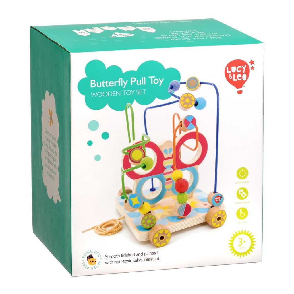 LUCY & LEO dřevěný tahací korálkový labyrint Motýl