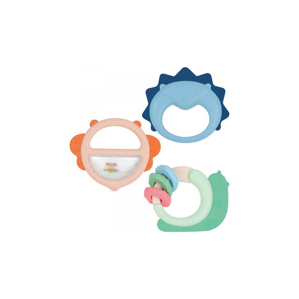 Chrastítka v krásných pastelových barvách ve tvaru zvířátek jsou lehká do ruky a mají tvar pro snadné uchopení. Každé chrastítko má měkkou, pružnou část sloužící jako kousátko pro masírování dásní při prořezávání prvních zoubků.