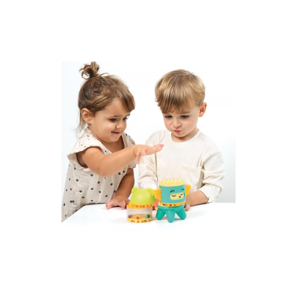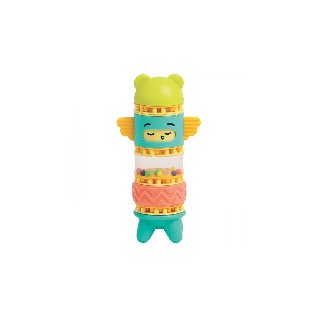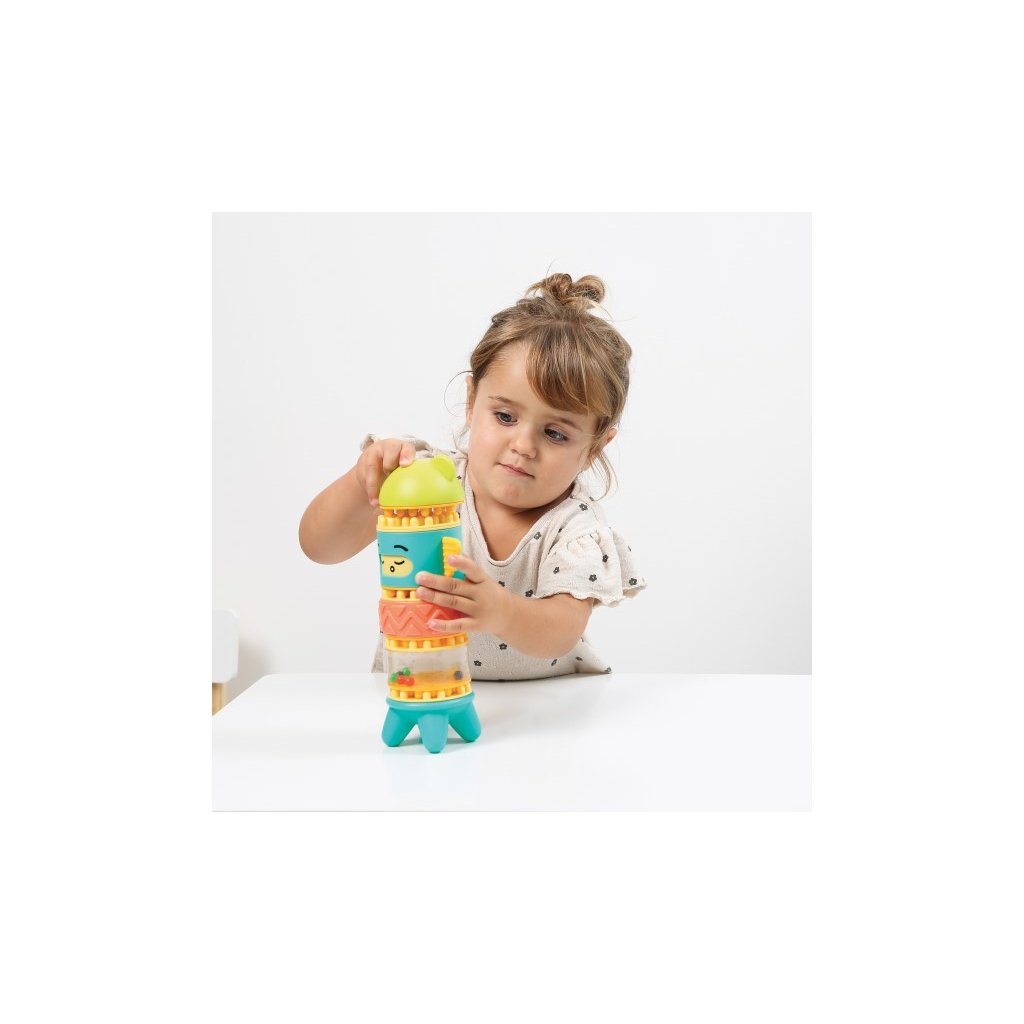 Stavebnice pro nejmenší se skládá se 6 dílů, které dítě skládá na sebe, až vytvoří figurku podobnou totemu. Spící obličejík na jednom z dílů se po zmáčknutí hlavy "probudí" a změní se na obličejík usměvavý. Díly je možné na sebe skládat pokaždé v jiném pořadí a vytvářet tak různé varianty věže. Stavebnice vede děti intuitivně k jednoduchým pohybům, které jsou klíčové pro rozvoj jemné motoriky: skládání, válení, spojování atd. Děti si procvičují úchop, prostorové vnímání, soustředění, a trpělivost při skládání dílků. Stavebnice je vyrobena z materiálu příjemného na dotek. Vhodné pro děti od 10 měsíců.