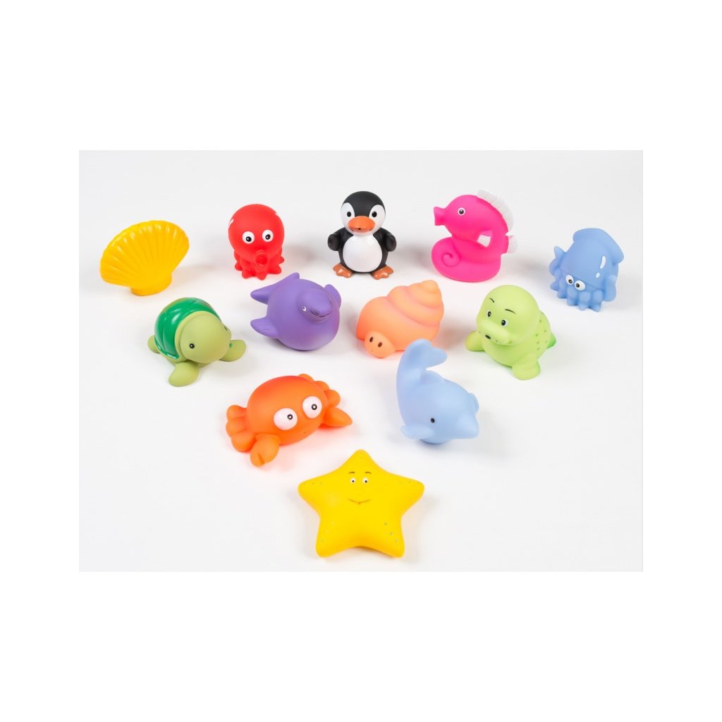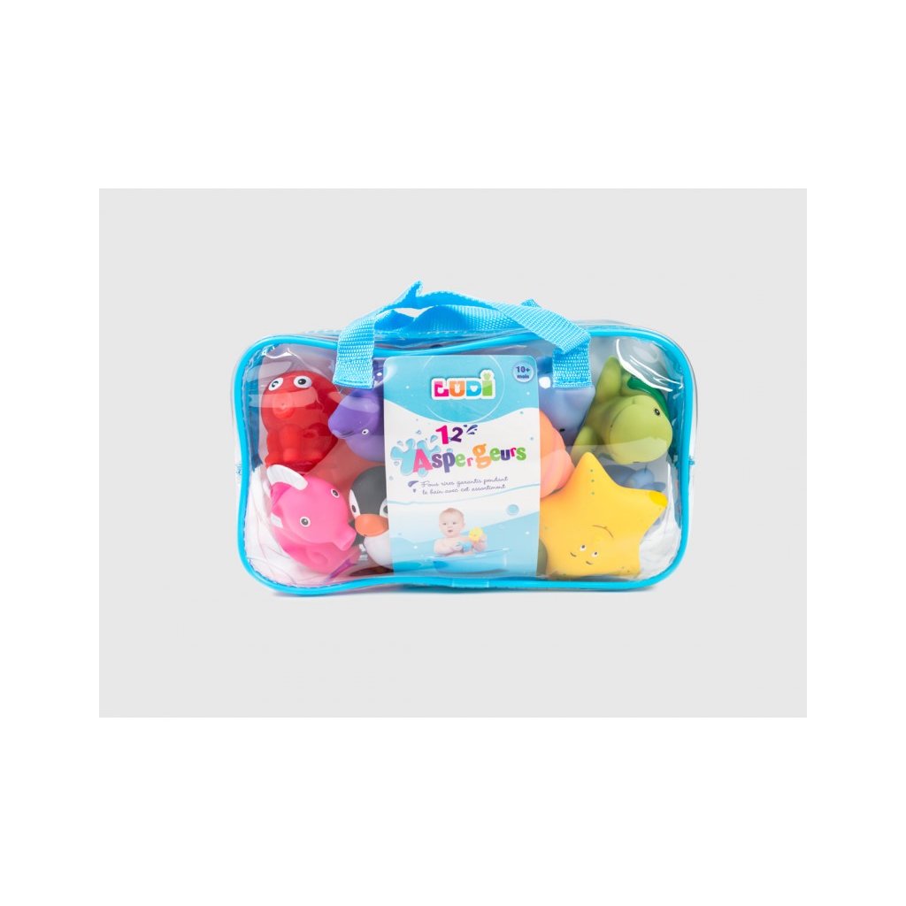 Sada 12 stříkacích hraček Ludi pro zábavu během koupání v praktické úložné tašce. Vhodné od 10 měsíců.