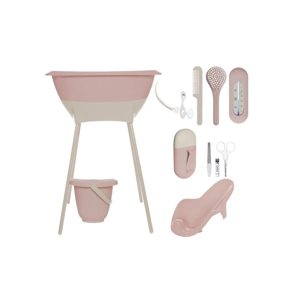 Máte rádi krásné moderní věci a nechcete za ně utratit příliš mnoho peněz? Tak si vyberte LUMU. Sada všech výrobků trendové holandské značky LUMA babycare, které budete ke koupání potřebovat sestává z dětské plastové vaničky, stojanu pod vaničku , kyblíku na pleny s víkem, koupacího lehátka, koupacího teploměru, hřebínku a kartáčku, dětské manikúry a odtokové hadice. Cena sady je zvýhodněná oproti koupi po jednotlivých kusech!