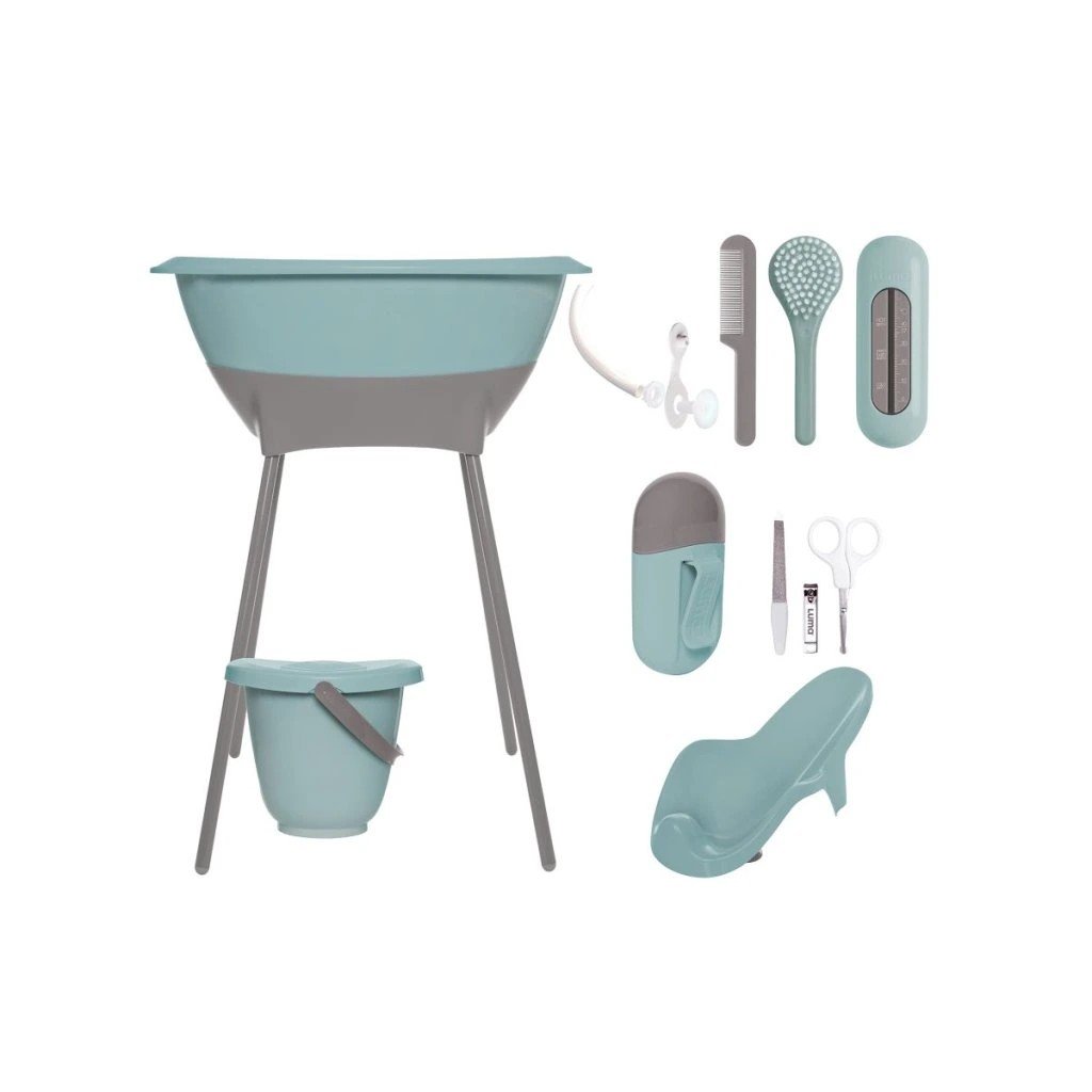 Máte rádi krásné moderní věci a nechcete za ně utratit příliš mnoho peněz? Tak si vyberte LUMU. Sada všech výrobků trendové holandské značky LUMA babycare, které budete ke koupání potřebovat sestává z dětské plastové vaničky, stojanu pod vaničku , kyblíku na pleny s víkem, koupacího lehátka, koupacího teploměru, hřebínku a kartáčku, dětské manikúry a odtokové hadice. Cena sady je zvýhodněná oproti koupi po jednotlivých kusech!