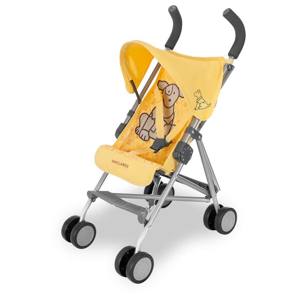 Kočárek Maclaren Junior Quest Chiclets zaujme svým vzhledem každou malou slečnu. Stříšku kočárku lze sklopit a je možné ho složit do kompaktního tvaru. Je vhodný pro panenky do velikosti 46 cm a pro děti od 3 let. Kočárek má žlutou barvu s motivem pejska.