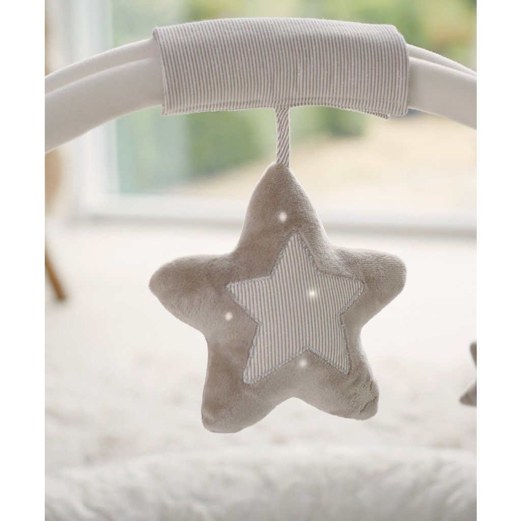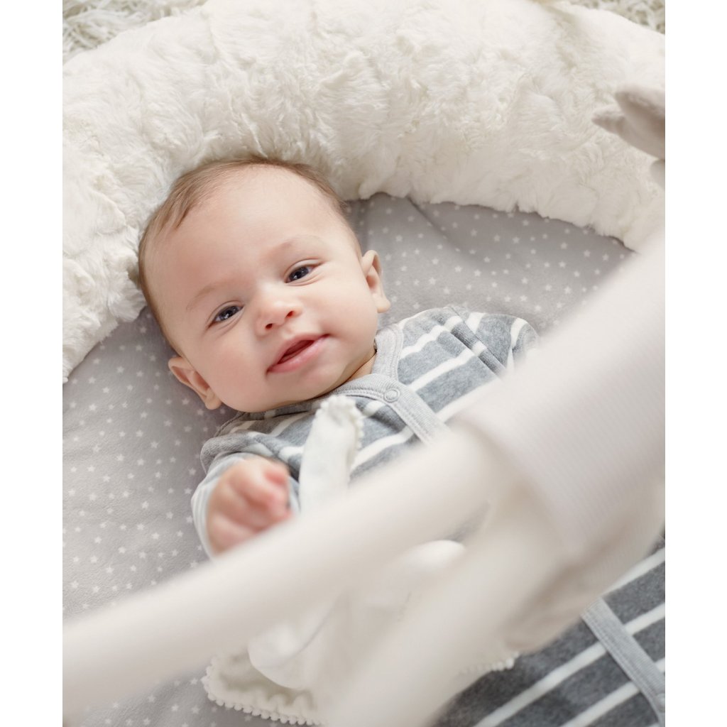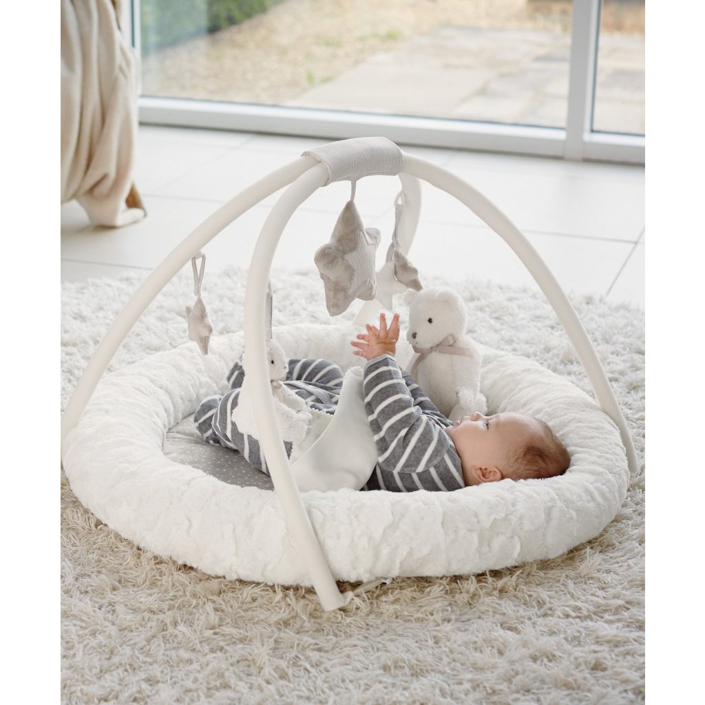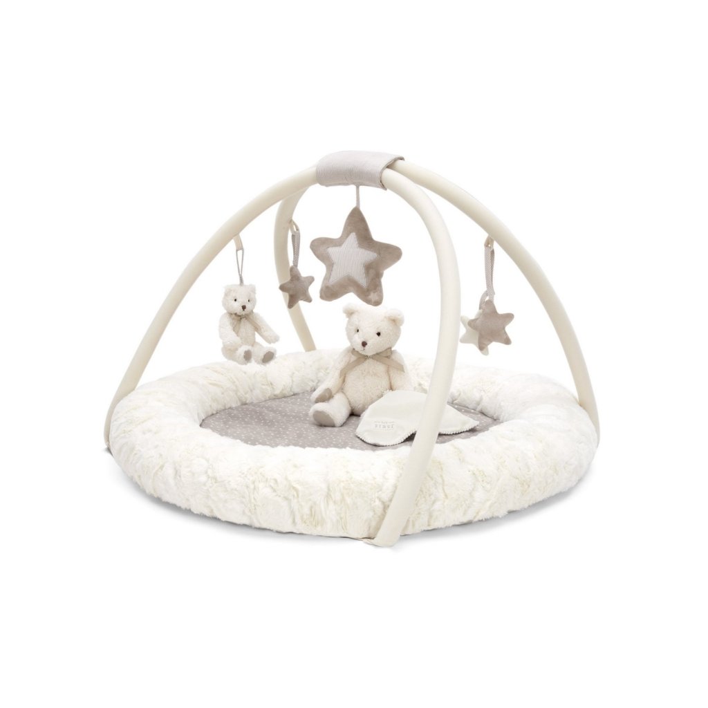 Hrací deka ve tvaru útulného hnízdečka je ideální pro miminko v chladných obdobích roku. Měkké vyvýšené okraje deky pokryté hebkým plyšem vytvářejí pocit bezpečí pro dítě a současně jej podněcují ke hře na bříšku. Svítící hvězdička a další zavěšené chrasticí či pískací hračky lákají dítě ke zkoumání a pozorování. Kromě zavěšených hraček je součástí hrací deky i velký roztomilý medvídek, který se může stát nepostradatelným společníkem v postýlce dítěte. Odnímatelná hrazda umožňuje používat deku i jednotlivé hračky samostatně.