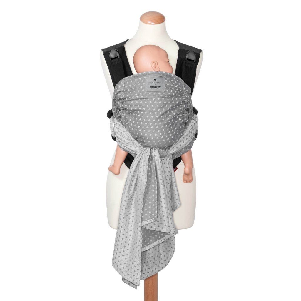 Originální nosítko Manduca Duo představuje kombinaci šátku a nosítka v jednom. Jednoduchý Duo clip systém usnadňuje zapínání na ramenních popruzích. Tkaný, pevný materiál tvoří hlavní část. Šátkové kroužky umožňují dotažení látky nosítka na milimetry.