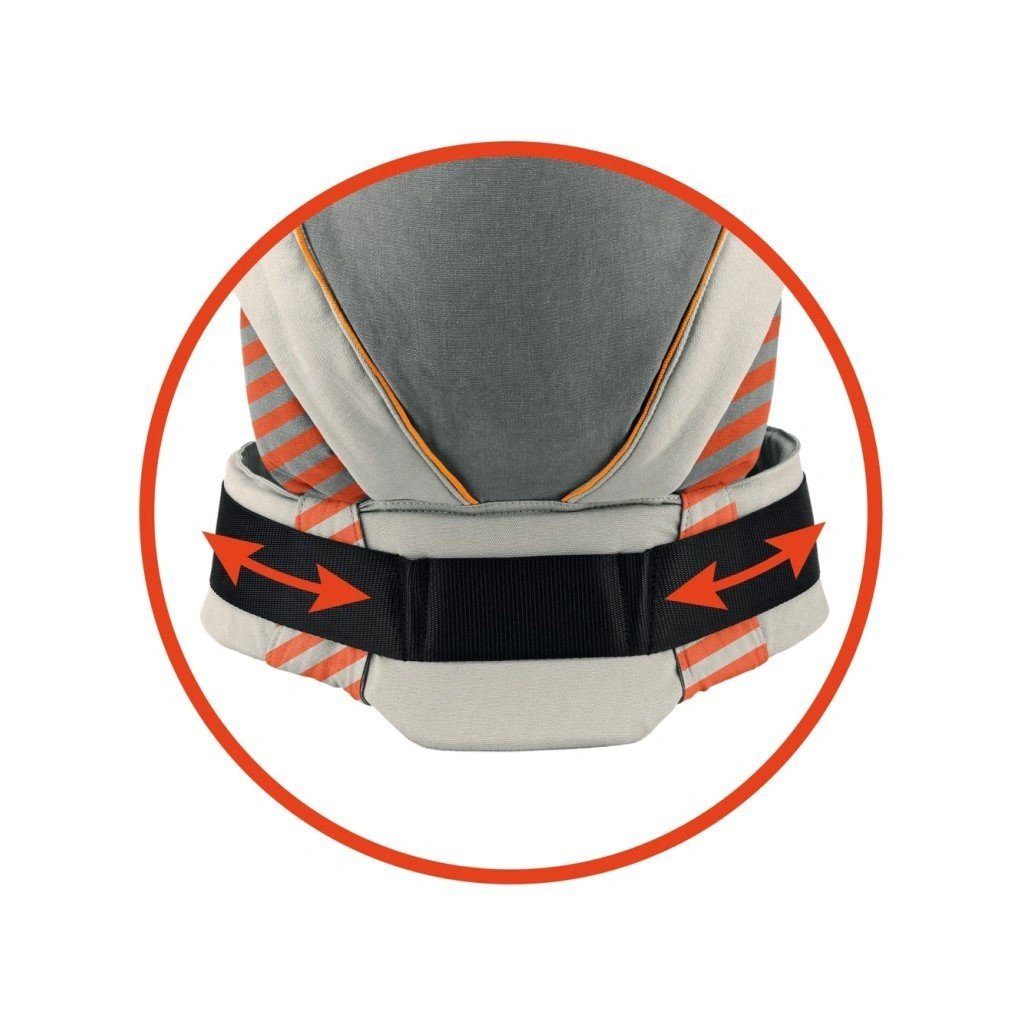 - dlouhá zádová opěrka, kterou lze jednoduše pomocí zipu nastavit přibližně o 7 cm umožňuje bezpečné nošení i velkých dětí