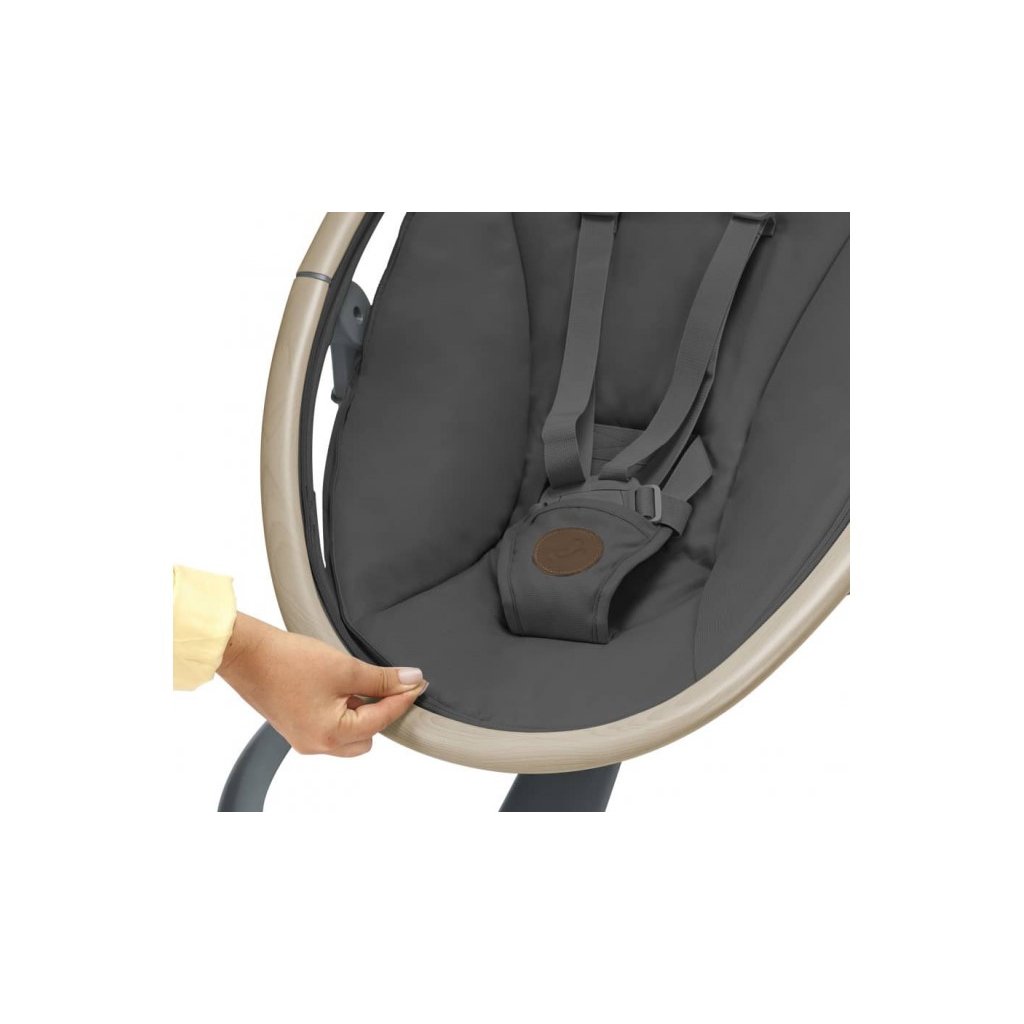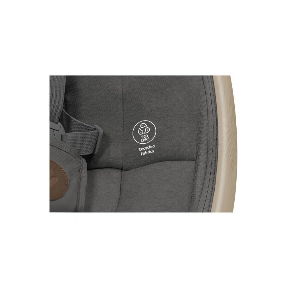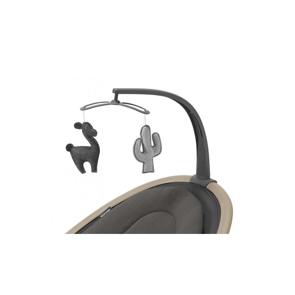 Houpací lehátko v krásném designovém provedení Maxi-Cosi Cassia poskytne vašemu dítěti pohodlí a možnost být neustále ve vaší blízkosti. Lehátko je vhodné pro spaní i pro zabavení dítěte pozorováním jeho okolí. Svým originálním designem se stane i krásným doplňkem vašeho interiéru. Lehátko umožňuje nastavení pěti rychlostí houpání a časovač na 8, 15 nebo 30 minut. Lehátko můžete otáčet o 360°, abyste na sebe s dítětem viděli bez ohledu na to, kde se v místnosti nacházíte. Lehátko nabízí dvě polohy sklonu na spaní i na pozorování okolí. Hudební box s možností nastavení hlasitosti obsahuje 12 melodií a přírodních zvuků. Detektor pohybu automaticky zapne uklidňující houpání, když se dítě probudí a začne plakat. Měkké hračky zavěšené na hrazdě se při houpání lehátka jemně pohybují a upoutají tak pozornost dítěte. Lehátko je vybaveno pohodlnou měkkou vložkou pro maximální pohodlí dítěte a 3-bodovým bezpečnostním pásem. Textilní části lehátka jsou s ohledem na udržitelnost životního prostředí vyrobeny ze 100% recyklovaných materiálů. Snímatelný potah je možné prát v pračce. Lehátko je napájeno ze sítě a nabízí i možnost fungování na baterie (4xAA baterie nejsou součástí balení).