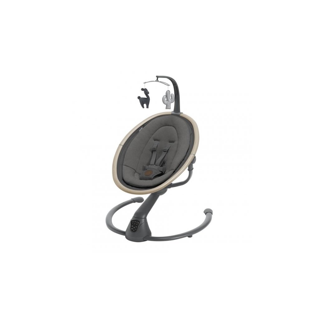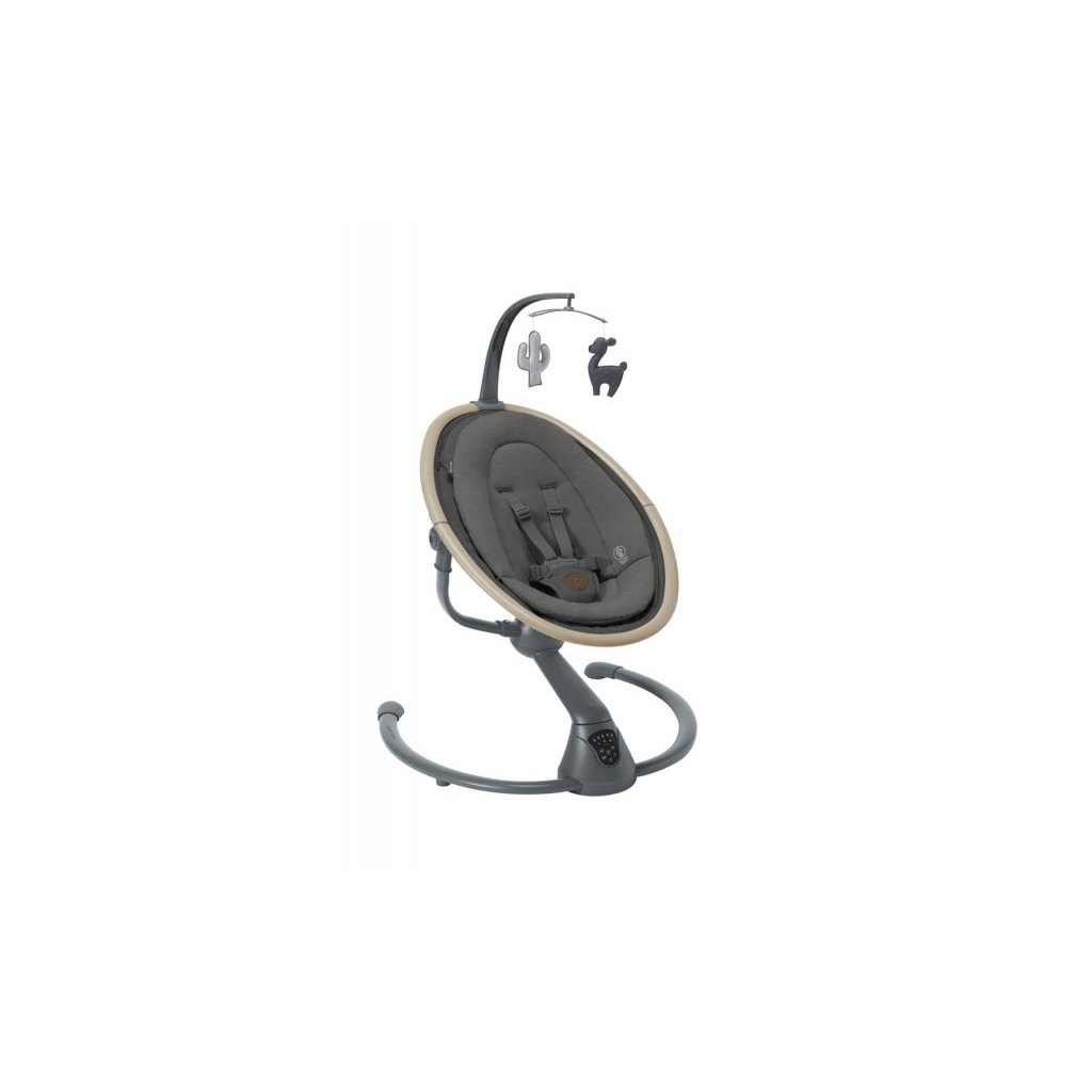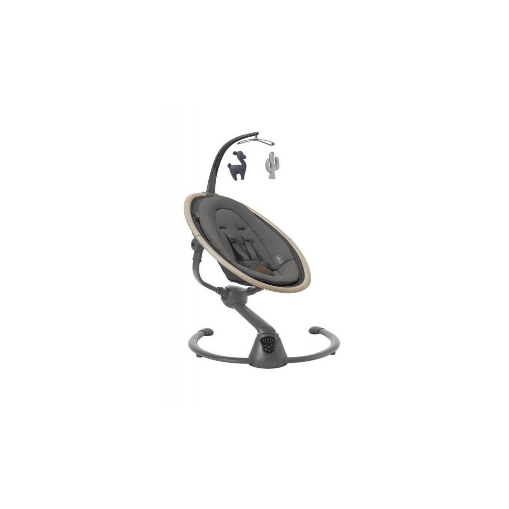 Houpací lehátko v krásném designovém provedení Maxi-Cosi Cassia poskytne vašemu dítěti pohodlí a možnost být neustále ve vaší blízkosti. Lehátko je vhodné pro spaní i pro zabavení dítěte pozorováním jeho okolí. Svým originálním designem se stane i krásným doplňkem vašeho interiéru. Lehátko umožňuje nastavení pěti rychlostí houpání a časovač na 8, 15 nebo 30 minut. Lehátko můžete otáčet o 360°, abyste na sebe s dítětem viděli bez ohledu na to, kde se v místnosti nacházíte. Lehátko nabízí dvě polohy sklonu na spaní i na pozorování okolí. Hudební box s možností nastavení hlasitosti obsahuje 12 melodií a přírodních zvuků. Detektor pohybu automaticky zapne uklidňující houpání, když se dítě probudí a začne plakat. Měkké hračky zavěšené na hrazdě se při houpání lehátka jemně pohybují a upoutají tak pozornost dítěte. Lehátko je vybaveno pohodlnou měkkou vložkou pro maximální pohodlí dítěte a 3-bodovým bezpečnostním pásem. Textilní části lehátka jsou s ohledem na udržitelnost životního prostředí vyrobeny ze 100% recyklovaných materiálů. Snímatelný potah je možné prát v pračce. Lehátko je napájeno ze sítě a nabízí i možnost fungování na baterie (4xAA baterie nejsou součástí balení).
