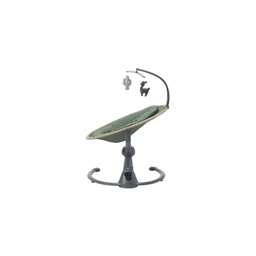 Houpací lehátko v krásném designovém provedení Maxi-Cosi Cassia poskytne vašemu dítěti pohodlí a možnost být neustále ve vaší blízkosti. Lehátko je vhodné pro spaní i pro zabavení dítěte pozorováním jeho okolí. Svým originálním designem se stane i krásným doplňkem vašeho interiéru. Lehátko umožňuje nastavení pěti rychlostí houpání a časovač na 8, 15 nebo 30 minut. Lehátko můžete otáčet o 360°, abyste na sebe s dítětem viděli bez ohledu na to, kde se v místnosti nacházíte. Lehátko nabízí dvě polohy sklonu na spaní i na pozorování okolí. Hudební box s možností nastavení hlasitosti obsahuje 12 melodií a přírodních zvuků. Detektor pohybu automaticky zapne uklidňující houpání, když se dítě probudí a začne plakat. Měkké hračky zavěšené na hrazdě se při houpání lehátka jemně pohybují a upoutají tak pozornost dítěte. Lehátko je vybaveno pohodlnou měkkou vložkou pro maximální pohodlí dítěte a 3-bodovým bezpečnostním pásem. Textilní části lehátka jsou s ohledem na udržitelnost životního prostředí vyrobeny ze 100% recyklovaných materiálů. Snímatelný potah je možné prát v pračce. Lehátko je napájeno ze sítě a nabízí i možnost fungování na baterie (4xAA baterie nejsou součástí balení).