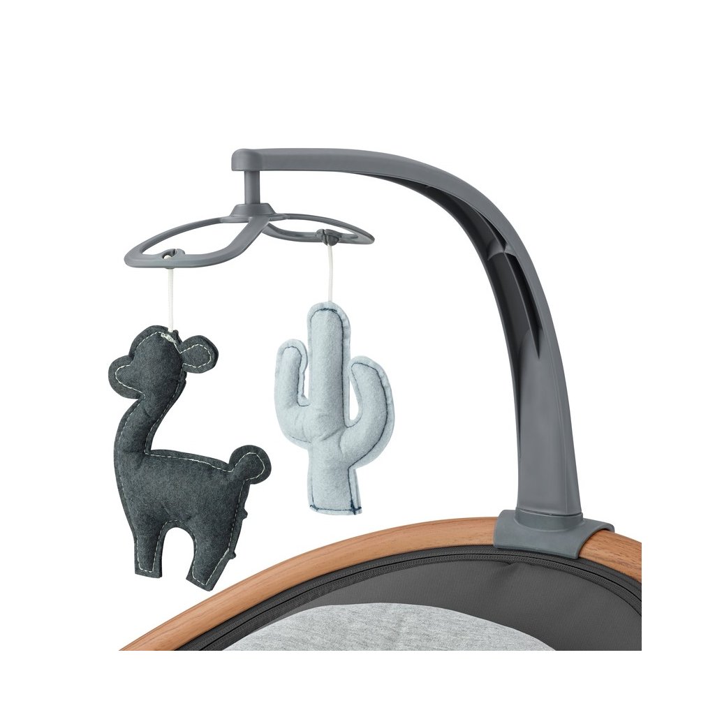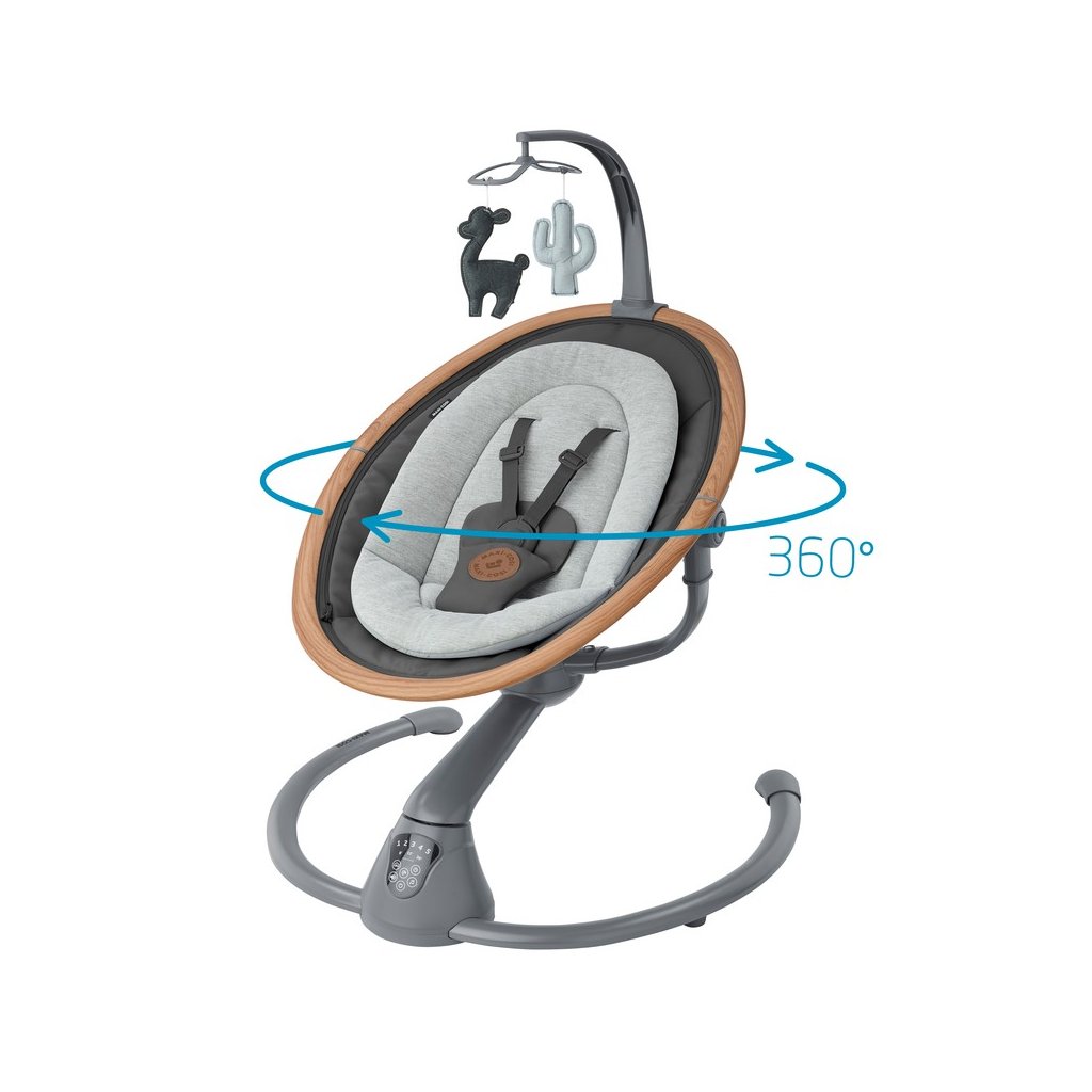 Houpací lehátko v krásném designovém provedení Maxi-Cosi Cassia poskytne vašemu dítěti pohodlí a možnost být neustále ve vaší blízkosti. Lehátko je vhodné pro spaní i pro zabavení dítěte pozorováním jeho okolí. Svým originálním designem se stane i krásným doplňkem vašeho interiéru. Lehátko umožňuje nastavení pěti rychlostí houpání a časovač na 8, 15 nebo 30 minut. Lehátko můžete otáčet o 360°, abyste na sebe s dítětem viděli bez ohledu na to, kde se v místnosti nacházíte. Lehátko nabízí dvě polohy sklonu na spaní i na pozorování okolí. Hudební box obsahuje 10 melodií a 5 přírodních zvuků. Detektor zvuku a pohybu automaticky zapne uklidňující houpání, když se dítě probudí a začne plakat. Měkké hračky zavěšené na hrazdě se při houpání lehátka jemně pohybují a upoutají tak pozornost dítěte. Lehátko je vybaveno pohodlnou měkkou vložkou pro maximální pohodlí dítěte a 3-bodovým bezpečnostním pásem.