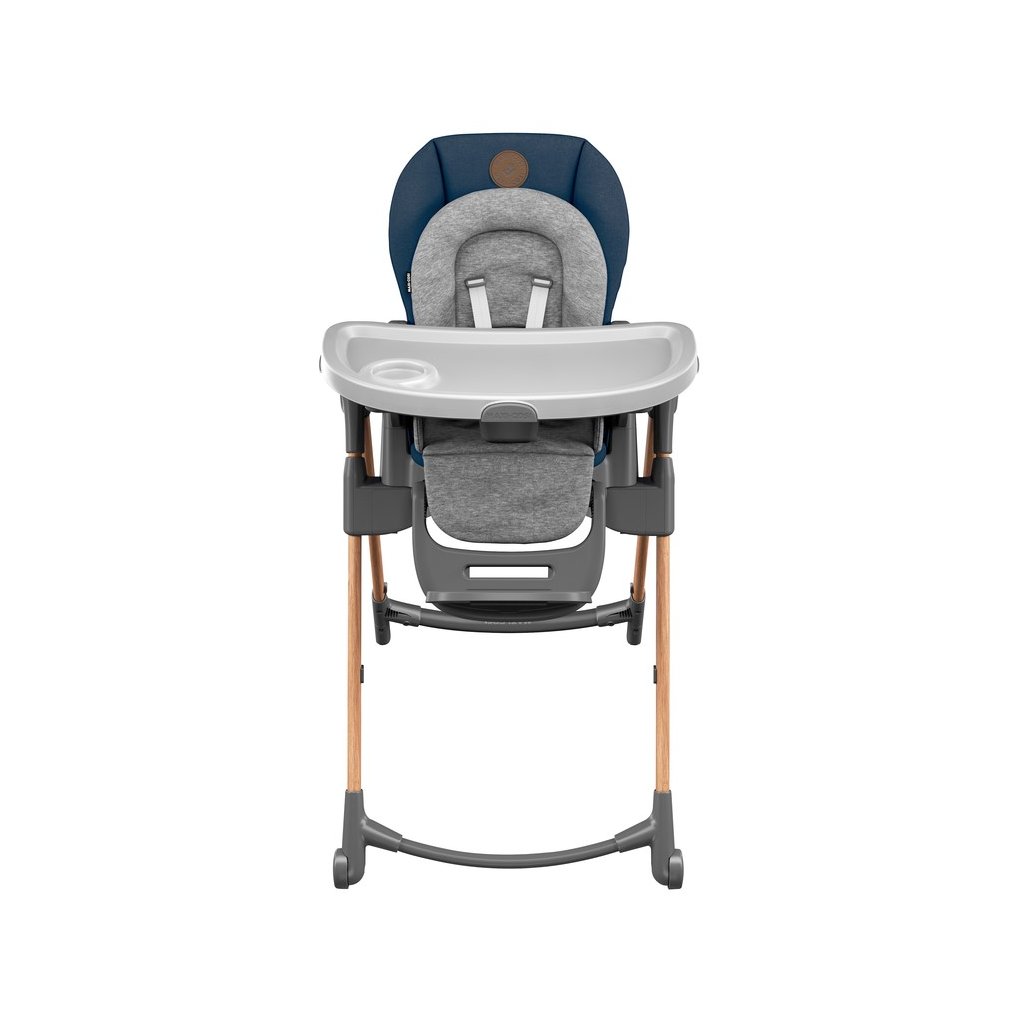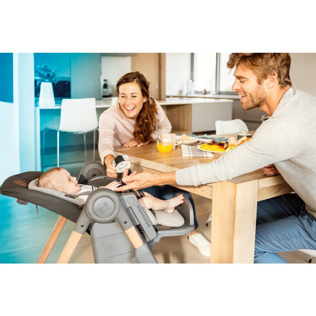 Jídelní židlička Maxi-Cosi Minla je multifunkční 6v1 židličkou, kterou může vaše dítě používat od narození do 6 let. Díky židličce se dítě může zúčastnit rodinného stolování již od prvních dnů svého života. Multifunkční židličku využijete jako lehátko pro miminko, vysokou jídelní židličku s pultem i bez, židli ke stolu pro starší děti i jako podsedák na klasickou židli. Vyjímatelná pohodlná vložka pro novorozence je zárukou pohodlí pro miminka od narození. Židlička nabízí 9 nastavení výšky a je tak vhodná téměř ke každému stolu. Zadní opěrku můžete nastavit do 5 různých poloh od ležení po sezení. Variabilitu nastavení doplňují 4 varianty polohování nohou a 2 pozice podpěrky na nohy. Jídelní pult nabízí 4 různé možnosti použití a je možné jej zavěsit na zadní nohy židličky. Odnímatelný tác na jídelním pultu usnadňuje jeho údržbu po stolování. Dle věku dítěte je dítě v židličce připoutáno nastavitelným 5-bodovým nebo 3-bodovým bezpečnostním pásem. Kolečka na předních nohou usnadňují manipulaci s židličkou. Pokud židličku nepoužíváte, je možné ji složit do kompaktního plochého tvaru pro uložení.
