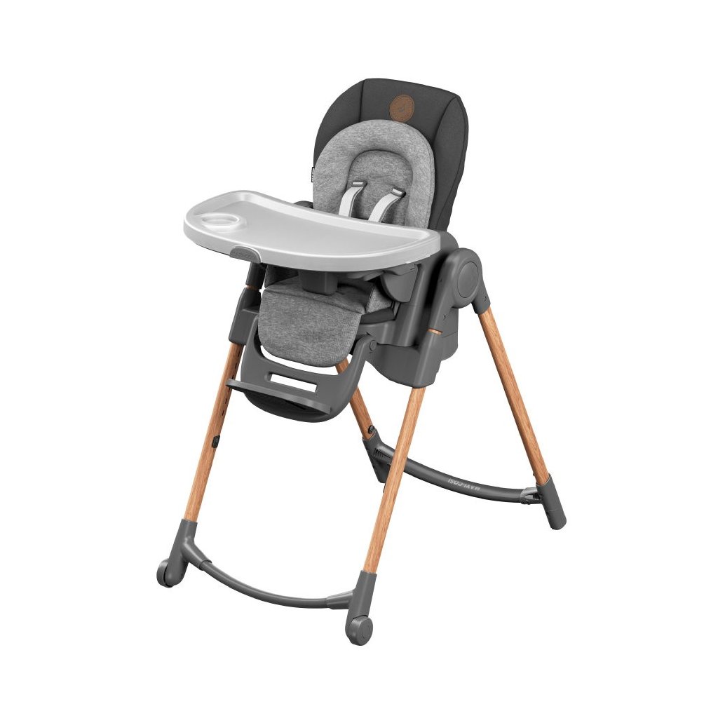 Jídelní židlička Maxi-Cosi Minla je multifunkční 6v1 židličkou, kterou může vaše dítě používat od narození do 6 let. Díky židličce se dítě může zúčastnit rodinného stolování již od prvních dnů svého života. Multifunkční židličku využijete jako lehátko pro miminko, vysokou jídelní židličku s pultem i bez, židli ke stolu pro starší děti i jako podsedák na klasickou židli. Vyjímatelná pohodlná vložka pro novorozence je zárukou pohodlí pro miminka od narození. Židlička nabízí 9 nastavení výšky a je tak vhodná téměř ke každému stolu. Zadní opěrku můžete nastavit do 5 různých poloh od ležení po sezení. Variabilitu nastavení doplňují 4 varianty polohování nohou a 2 pozice podpěrky na nohy. Jídelní pult nabízí 4 různé možnosti použití a je možné jej zavěsit na zadní nohy židličky. Odnímatelný tác na jídelním pultu usnadňuje jeho údržbu po stolování. Dle věku dítěte je dítě v židličce připoutáno nastavitelným 5-bodovým nebo 3-bodovým bezpečnostním pásem. Kolečka na předních nohou usnadňují manipulaci s židličkou. Pokud židličku nepoužíváte, je možné ji složit do kompaktního plochého tvaru pro uložení.