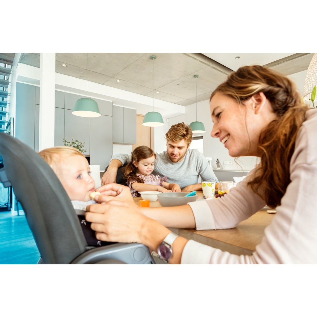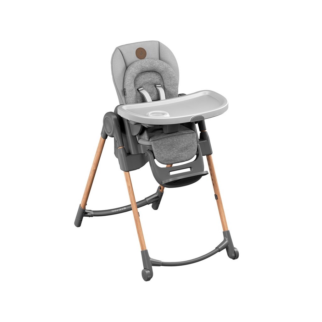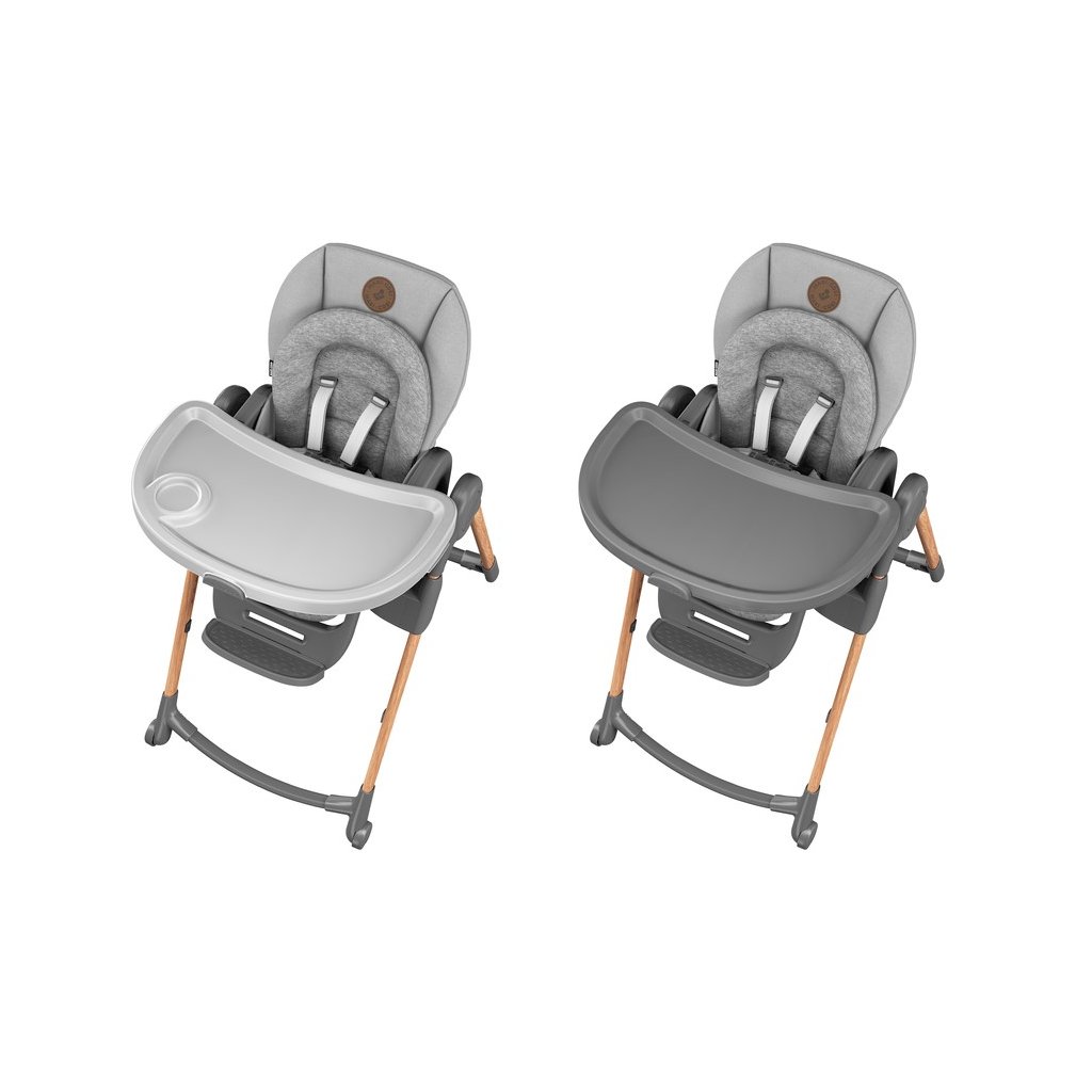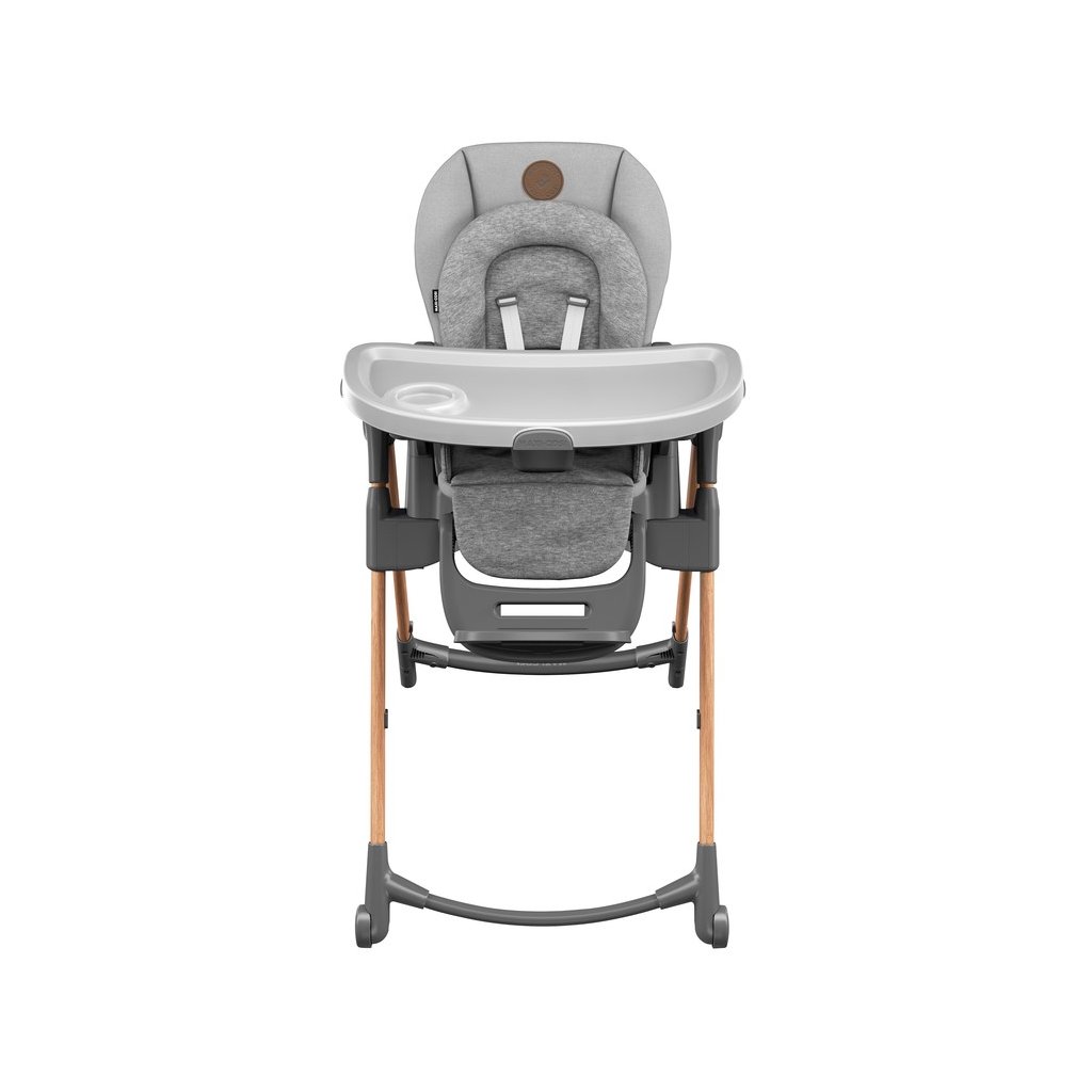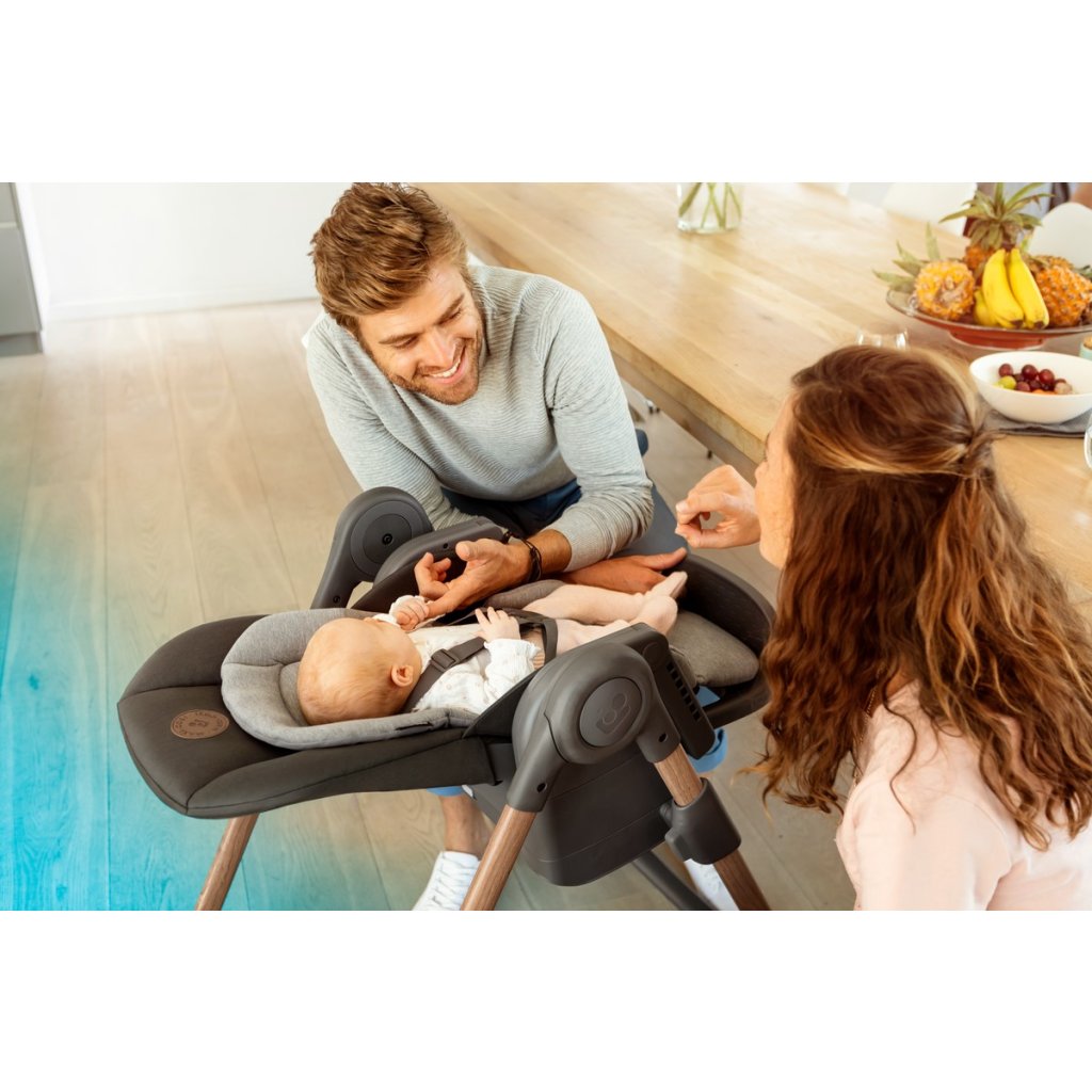 Jídelní židlička Maxi-Cosi Minla je multifunkční 6v1 židličkou, kterou může vaše dítě používat od narození do 6 let. Díky židličce se dítě může zúčastnit rodinného stolování již od prvních dnů svého života. Multifunkční židličku využijete jako lehátko pro miminko, vysokou jídelní židličku s pultem i bez, židli ke stolu pro starší děti i jako podsedák na klasickou židli. Vyjímatelná pohodlná vložka pro novorozence je zárukou pohodlí pro miminka od narození. Židlička nabízí 9 nastavení výšky a je tak vhodná téměř ke každému stolu. Zadní opěrku můžete nastavit do 5 různých poloh od ležení po sezení. Variabilitu nastavení doplňují 4 varianty polohování nohou a 2 pozice podpěrky na nohy. Jídelní pult nabízí 4 různé možnosti použití a je možné jej zavěsit na zadní nohy židličky. Odnímatelný tác na jídelním pultu usnadňuje jeho údržbu po stolování. Dle věku dítěte je dítě v židličce připoutáno nastavitelným 5-bodovým nebo 3-bodovým bezpečnostním pásem. Kolečka na předních nohou usnadňují manipulaci s židličkou. Pokud židličku nepoužíváte, je možné ji složit do kompaktního plochého tvaru pro uložení.