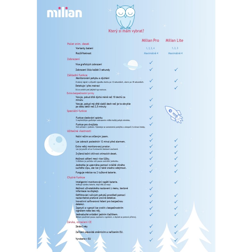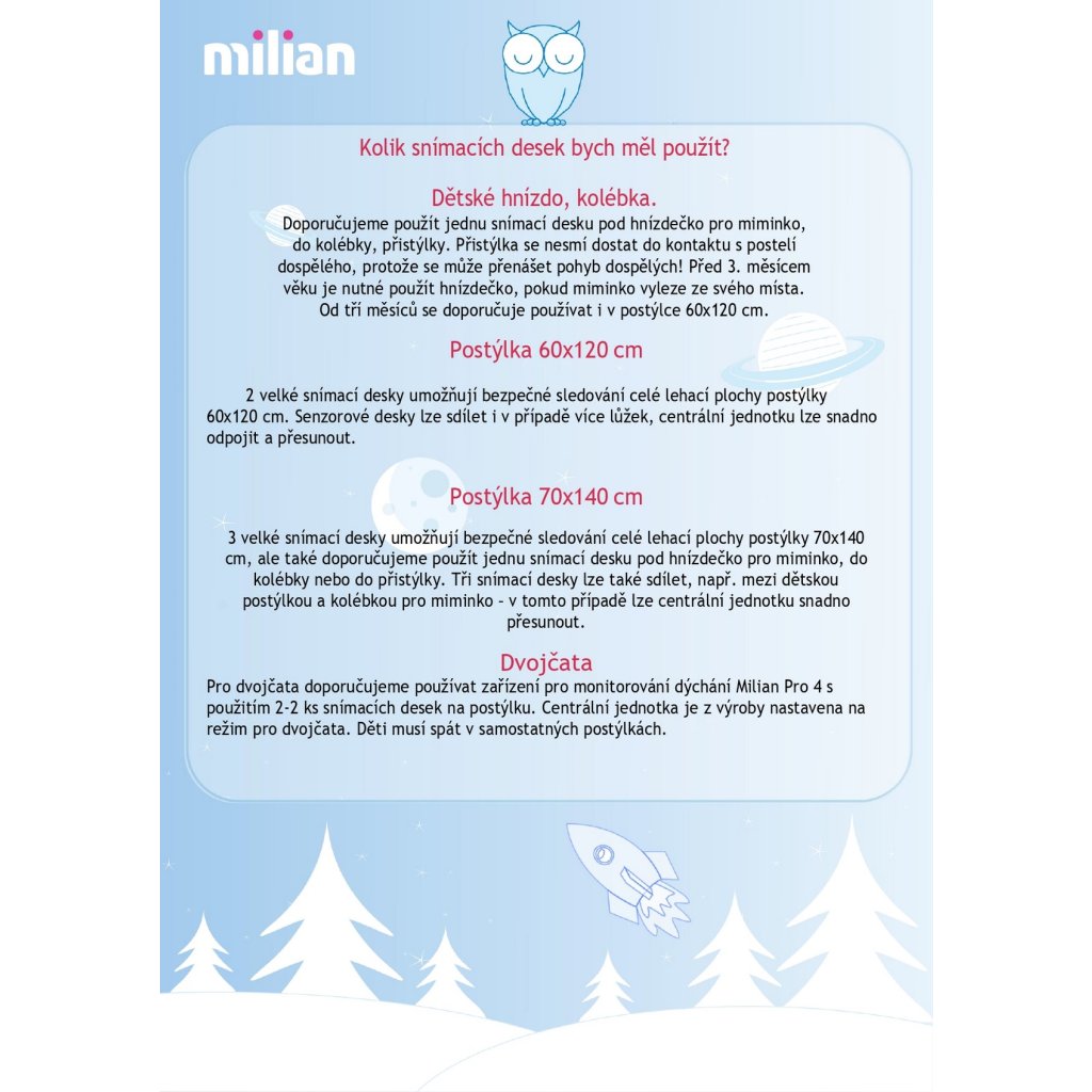 - funkce pro dvojičky, není třeba kupovat dvě zařízení (vyžaduje se samostatná postýlka a minimálně 2 snímací desky)