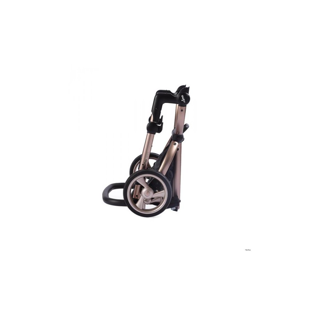 Podvozek je vybaven předními otočnými koly s možností aretace, která zaručují snadné manévrování a pohodlnou jízdu. Podvozek se velmi jednoduše skládá do kompaktního tvaru pro přenášení či převážení autem. Nastavitelná rukojeť pak umožňuje pohodlné tlačení kočárku bez ohledu na výšku rodiče. Podvozek má dva uzavíratelné košíky, které nabízejí dostatek prostoru pro ukládání nezbytných potřeb pro dítě.