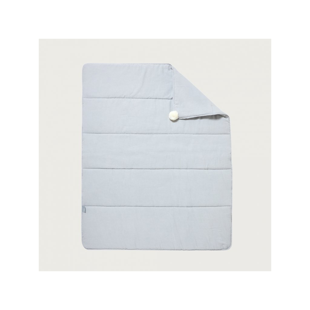 Deka s velkým D. Prošívaná deka z měkoučkého mušelínu má nespočet využití pro děti i rodiče. Díky velkorysému rozměru a nadýchané náplni poslouží jako příjemná podložka na hraní na zemi jak doma, tak v parku. Je skladná a ideální na přikrytí během cesty letadlem nebo autem, báječně poslouží jako jistota v košíku vašeho kočárku. V pokojíčku větších dětí zafunguje jako přikrývka pro malé hosty nebo přehoz přes postel. Je ušita z jemného biobavlněného mušelínu, který je měkký, prodyšný, saje a postupným používání a praním stárne do krásy. Prošívání a půvabný detail v podobě ozdobné bambulky dodává dece roztomilý vintage nádech.